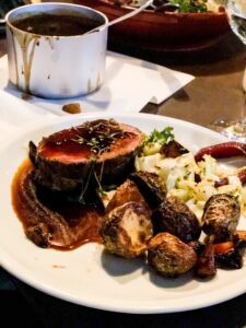 1) Gnid in entrecoten med salt & peppar. Stek den i smör så den får färg runtom. Lägg köttet i en ugnsform, tillaga sedan i ugn på 125 grader tills köttet fått en temp på 60 grader. Det tar ca 40 min.