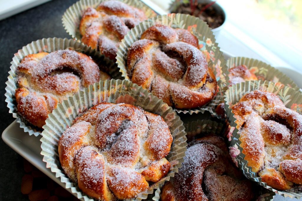 I övermorgon är det den 4/10. Det innebär att det är kanelbullens dag. Själv kommer jag vara på väg till Mallorca och landa där någongång vid 11-12 tiden. Så något kanelbullebak för min del. Men jag hopps att du har tid att baka dessa underbaringar!