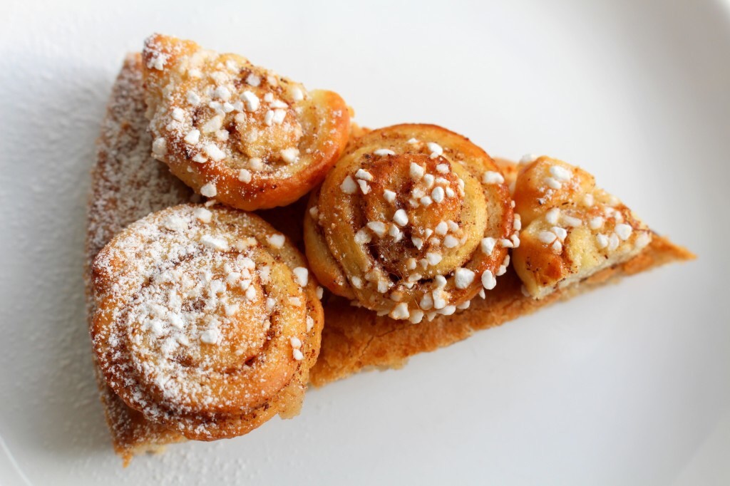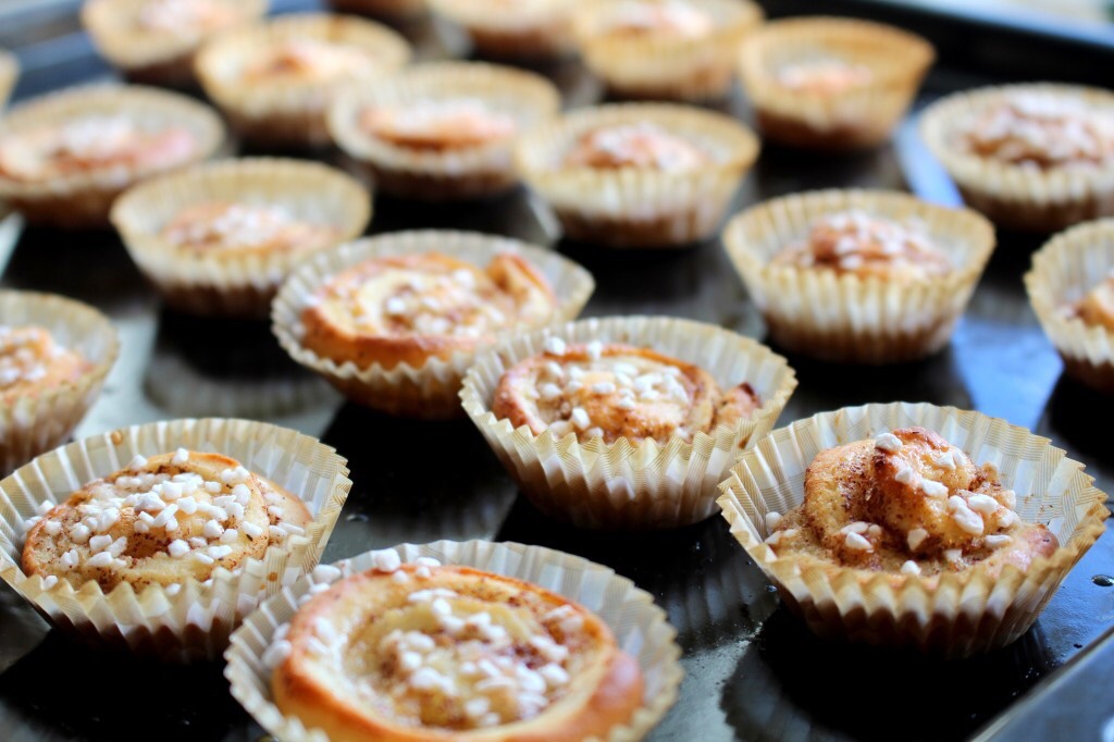 Börja med att baka bullarna. Jag gjorde det samtidigt som jag bakade vanliga bullar. Dessa bullar är gjorda i ministorlek, tänk dig att de ska vara lika stora som småkakeformar. Jag bakade efter mitt bästa kanelbullsrecept.