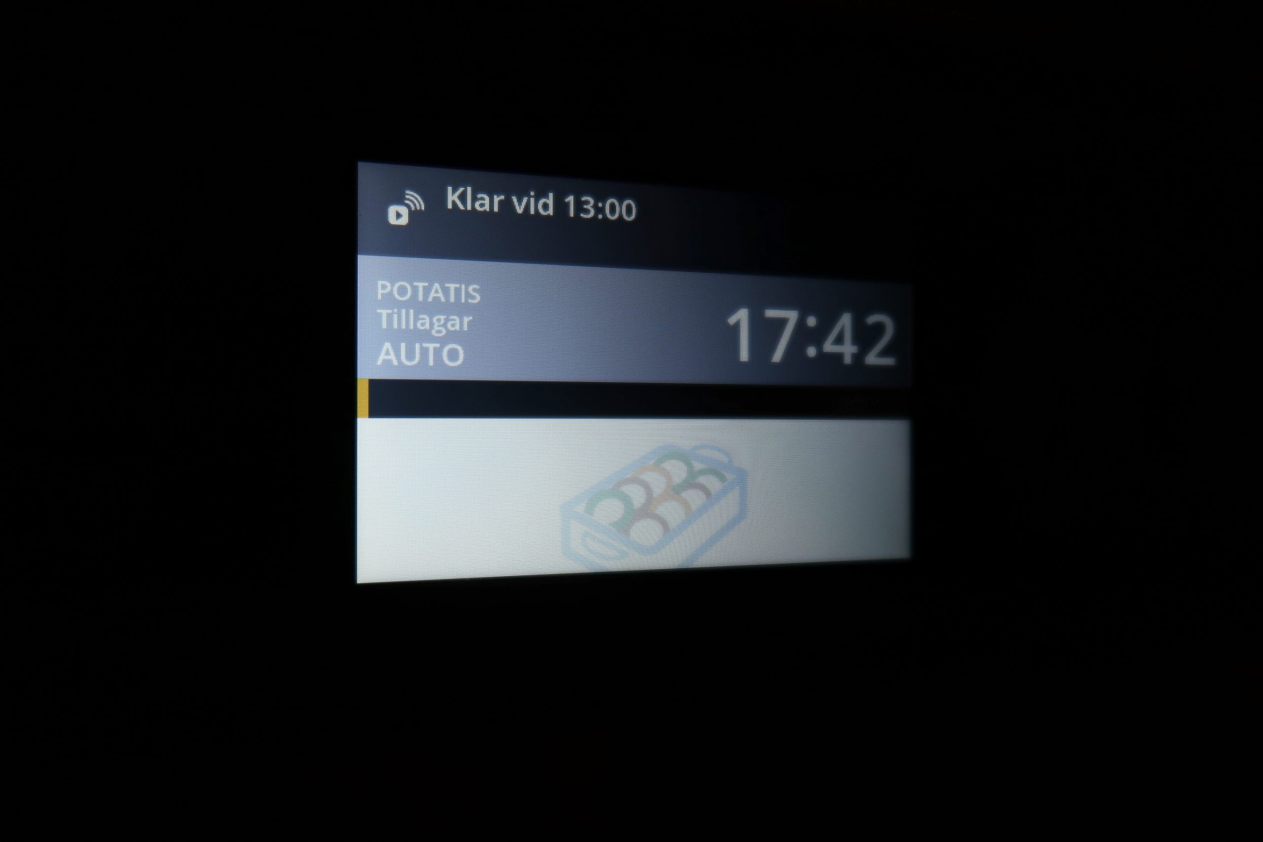 6:TH SENSE inställningarna har färdiga rätter programmerade. Du behöver alltså bara blippa fram till potatis och sen talar ugnen om för dig vad du ska göra. Örter sa den till mig, då kom jag på att jag måste köpa torkad timjan, farligt gott på klyftpotatis. Ok, så skjuts in i ugnen, ugnen vet att det tar ca 18 min för den att tillaga perfekt klyftpotatis.