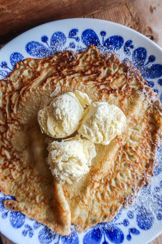 Glutenfria, laktosfria och mjölkfria pannkakor med semmelglass