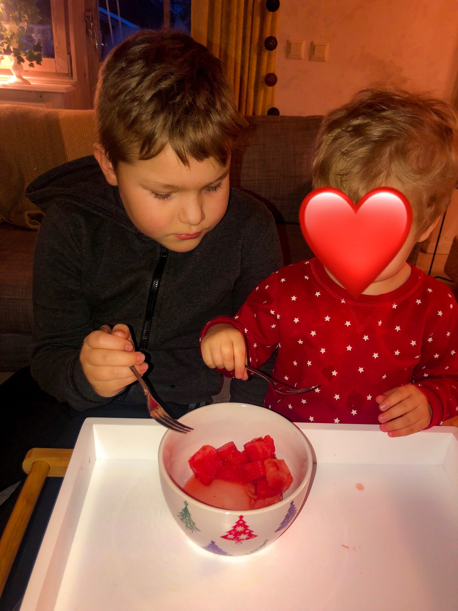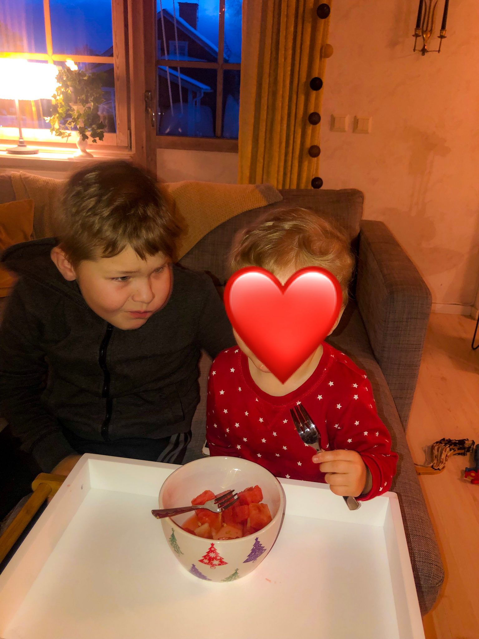 På eftermiddagen åkte vi ut till mamma och pappa efter att vi hämtat Edward på förskolan. Dom här två har lajjat, dom har busat och sen blev det melonstund. Lilla kusin Edward älskar Milo och tvärtom, dom gillar verkligen varann dom här två. Nu när det skildes åt så blev det både puss och kram. ❤️