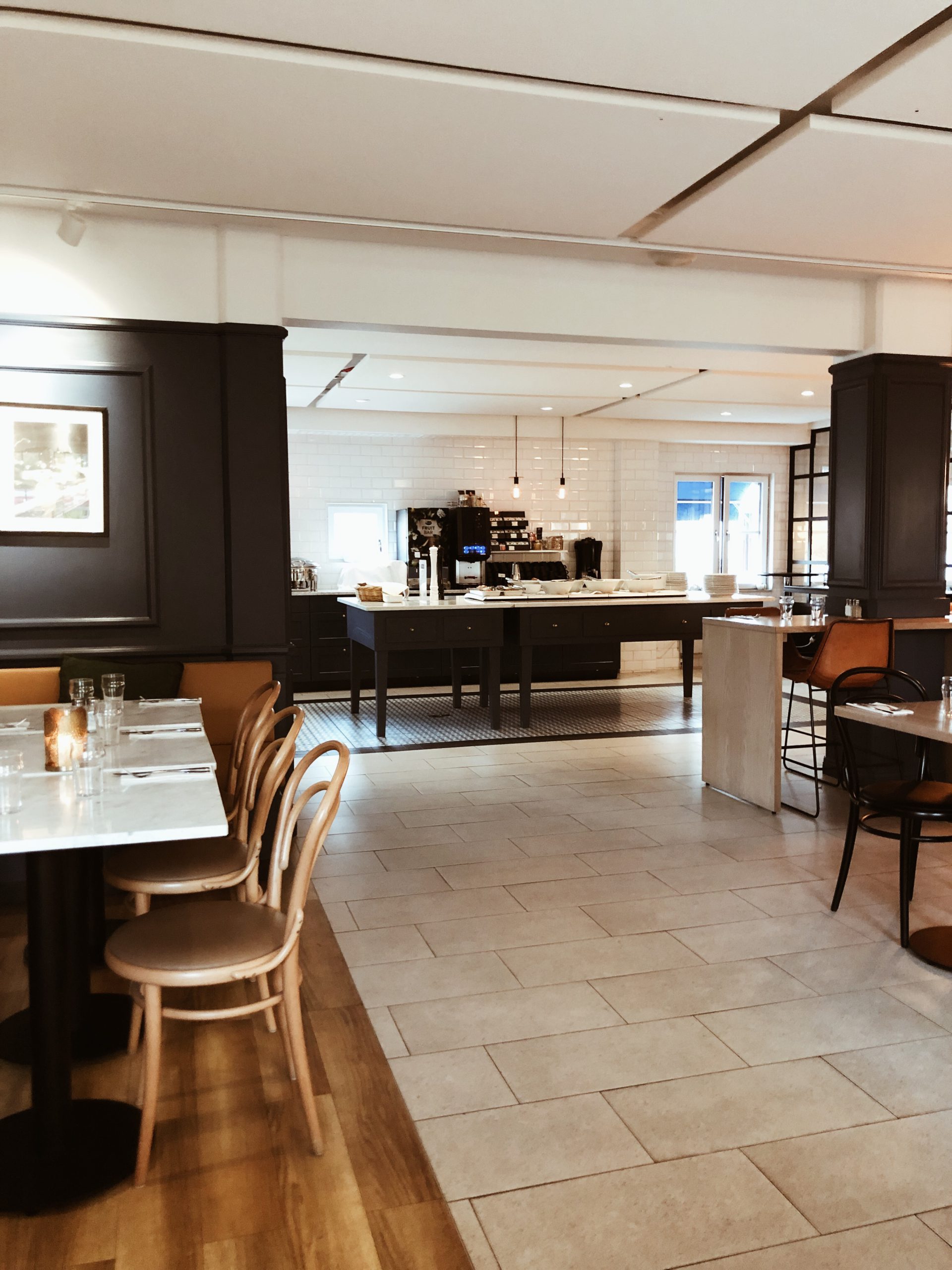 Matsalen med sitt mörka murriga blåa till det naturfärgade stolarna. Så snyggt! Man kanske skulle semestra i sin egen stad nångång. Bo på hotell, äta hotellfrukost och florera på stan.