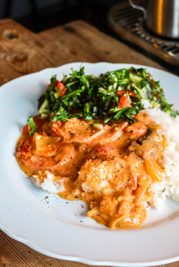 Krämig korv och halloumigryta