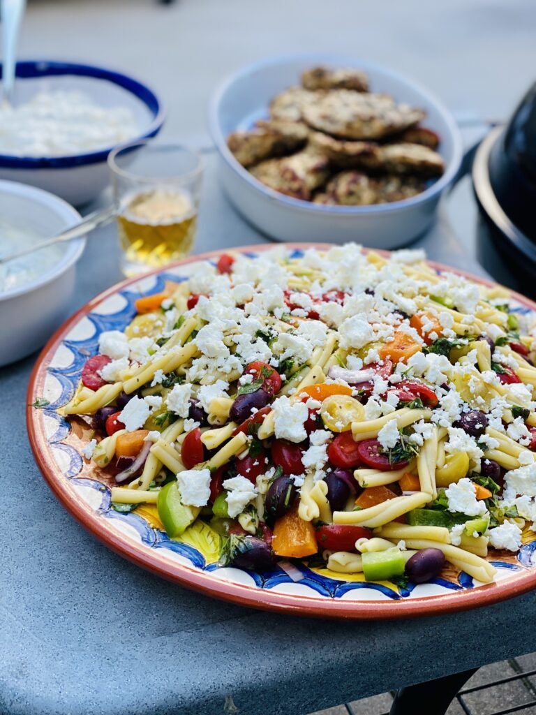 Grekisk pastasallad med grillad kyckling