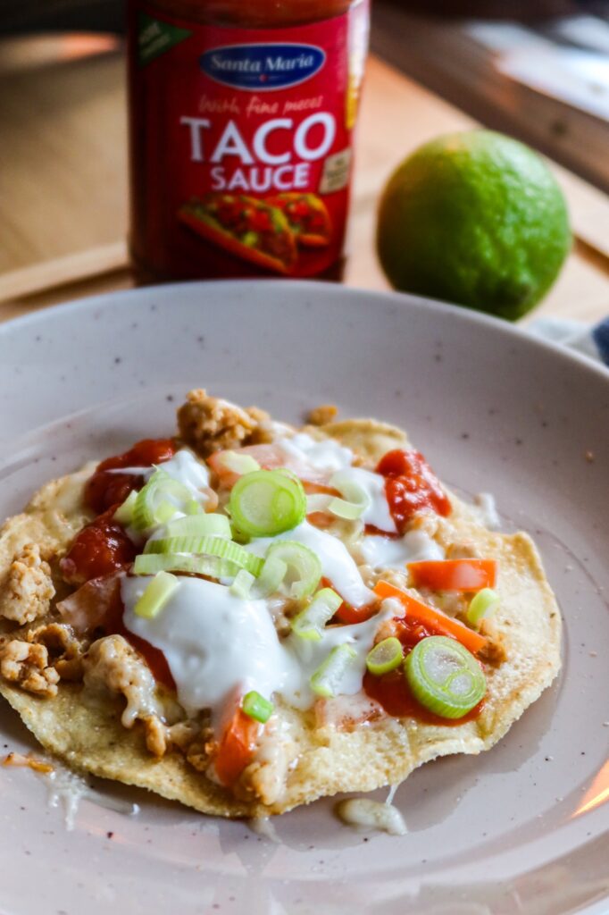 En favorit som vi ofta gör här hemma är kycklingnachos. Det är så himla enkelt
