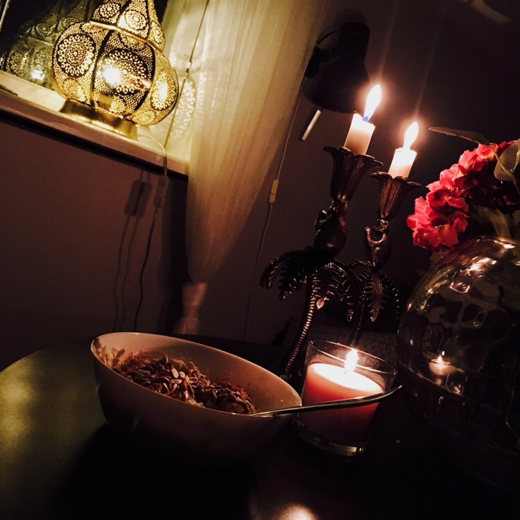 Godmorgon godmorgon! Tidig morgon här hemma. Jag sitter och äter morgonens frukost till tända ljusmys.