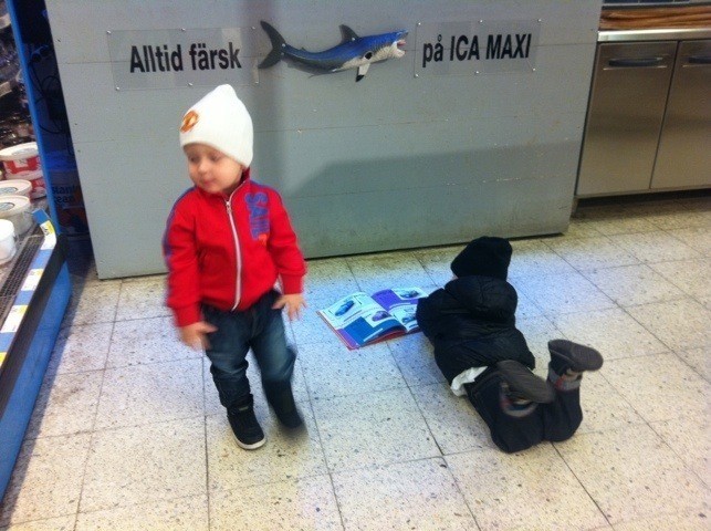 Idag på ICA träffade Milo sin dagiskompis Rian. Jag missade ta bilden i tid för