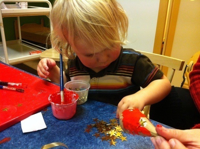 Ikväll har vi varit på julpyssel kväll på dagis. Här sitter Mulobebis o jag o