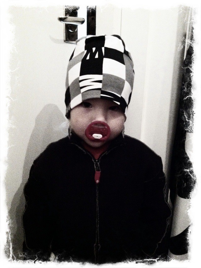 Sötisen i morse. Det var så pass kallt så PO.P mössan fick komma på. Den