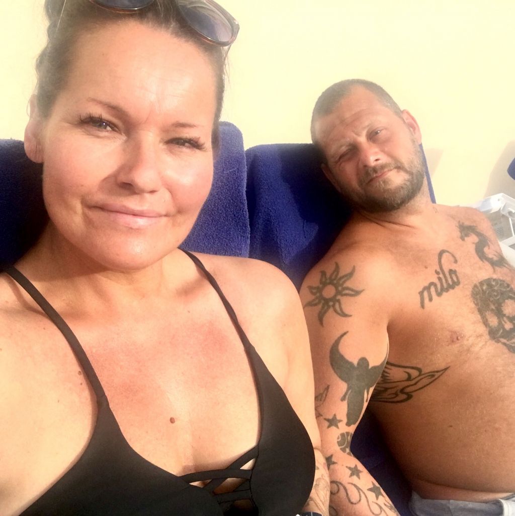 Direktrapport från stranden på Tylösand! Jag ligger under mitt parasoll medan Tony och Milo är