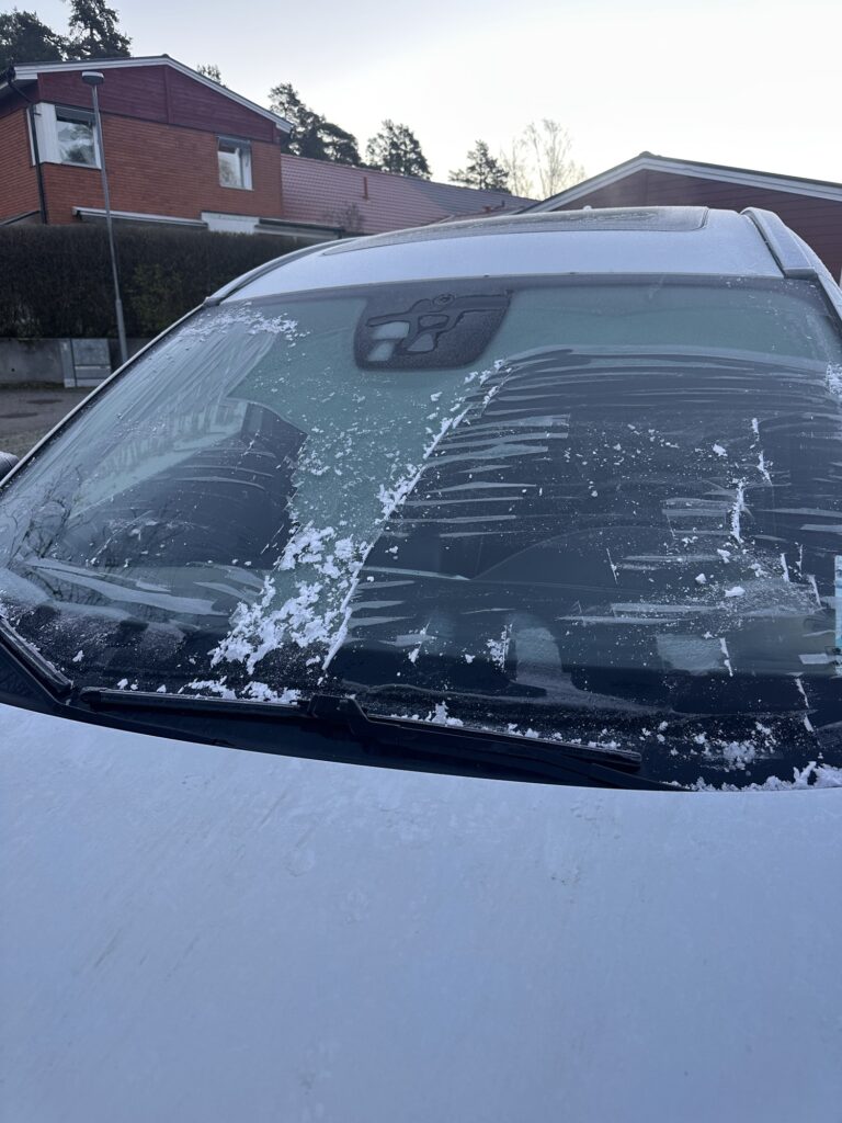 I fredags vaknade vi till den första riktiga frostmorgonen den här vintern. Hela bilen var