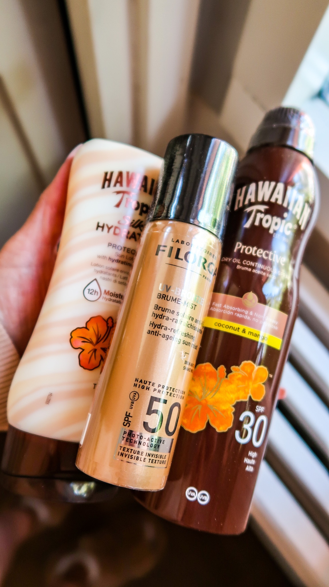 Hawaiian Tropic SPF 50 HÄR (20% rabatt just nu)// Hawaiian Tropic SPF 30 HÄR (20% rabatt just nu) // FILORGA SPF 50 spray HÄR. (20% rabatt just nu).