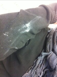 Är det nåt jag är specialist på så är det att kladda ner mina kläder. När jag varit gravid har det vart ett skämt. Då liknade alla tröjor man nånsin hade på sig en tvåårings som slabbat på förskolan. Vet inte hur många tröjor jag förstört här på mitt jobb. Och JA, jag håller på att ta fram arbetskläder till de dagar jag är i snickarverkstaden…. Jag måste, annars kommer detta bli svårare och svårare för mitt Vanish att luckas sköta sitt jobb! 🙂