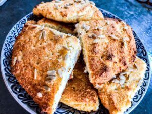 6) Ta en degspatel och gör ett kors i hela plattan, i båda. Nagga sedan varje.