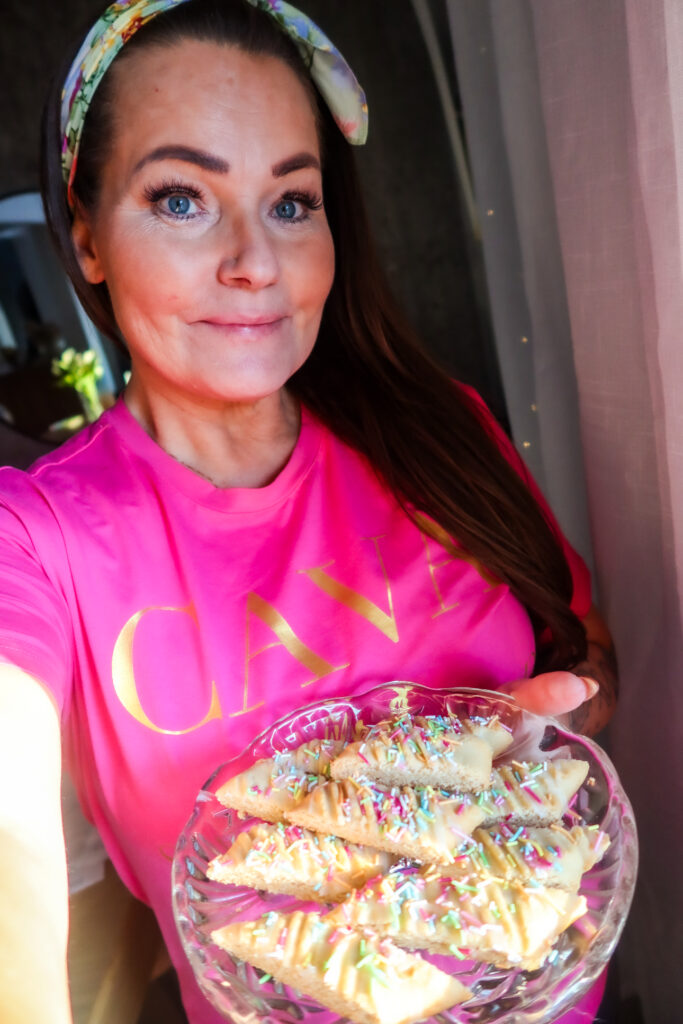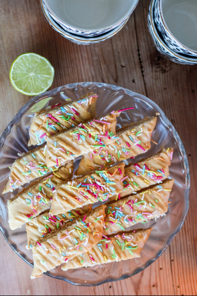 Hörni, igår hade jag en riktig bakdag. Älskar de där dagarna, och du skulle bara se mitt kök. Haha, det är kaos. Ni som minns mig från ”Hela Sverige bakar” minns säkert också att det alltid var total kaos precis vid mitt bord. Mitt sätt att baka på helt enkelt. Igår blev det lite olika kolasnittar, dessa kolasnittar med limeglasyr uppepå och härligt knaprigt strössel kommer passa perfekt till påsk. Blev riktigt goda, jag bakade kolasnittarna med lite mer mjöl för jag ville ha dem nästan som mördegskakor. Och tammetusan att de lyckades perfekt! Du måste testa dessa kolasnittar, limeglasyren och strösslet uppepå blev bara för bra! De bara smälte i munnen, blev sådär löjligt gott så det var absolut omöjligt att bara njuta av en kolasnitt.