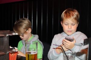 Igår tog vi en Pinchos kväll med våra små godingar. Här var det mitt uppe i ett varsitt spel på mobilerna. Barnen älskar Pinchos. Det finns ju specialplankor till barn som vi alltid brukar ta….bäst är nog godispåsen man kan få till efterrätt.