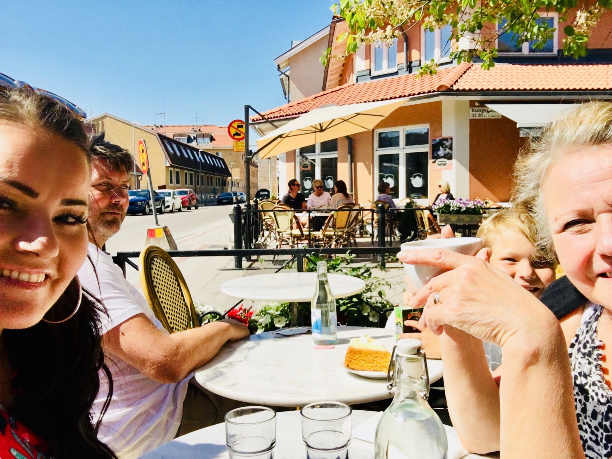 Efter IKEA och hämtning av Solatrålen från skolan tog vi en fika på stan. Magnus som har foten i gips var med också. Vi satt ute och njöt, alltså det här värdet är drömmen.