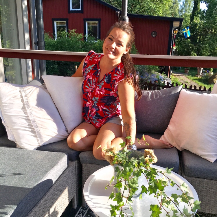 Hemma skulle jag sen ta en sån härlig bild på altanen. Jag satte mig tillrätta. Du vet sådär som man gör för att sitta så som man tror man ser bäst ut. Ingen muffinsmage, inga celluliter som syns osv….