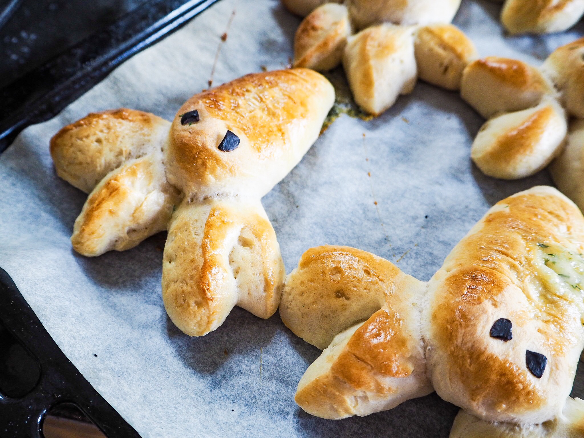 6) Låt bröden jäsa i ca 30 min. Pensla äggen innan gräddning. Grädda på 224 grader i ca 10-15 min. De ska få en fin gyllene färg.