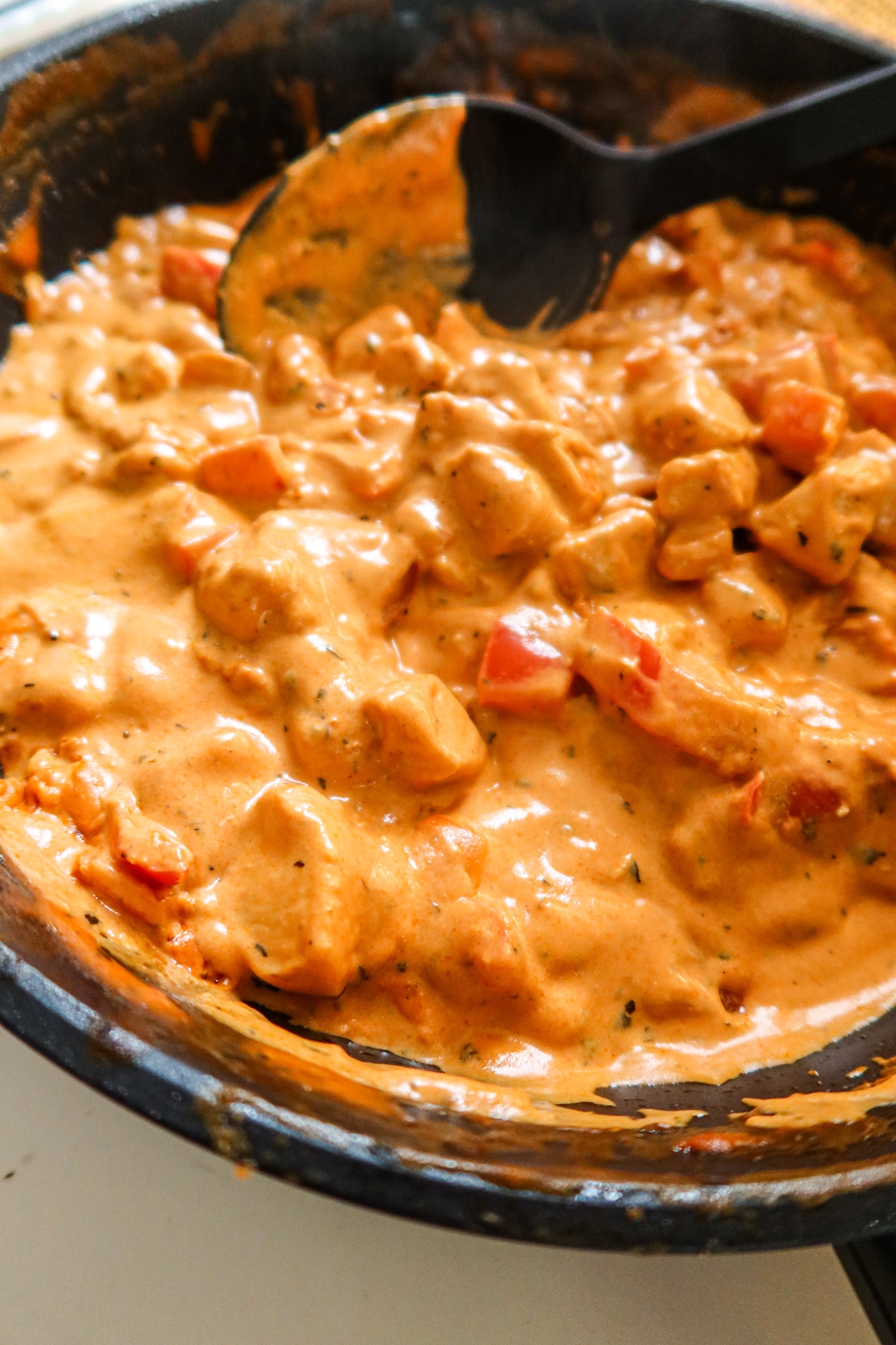1) Skär kycklingfiléerna i mindre bitar. Stek dem i olivolja tills de är genomstekta.