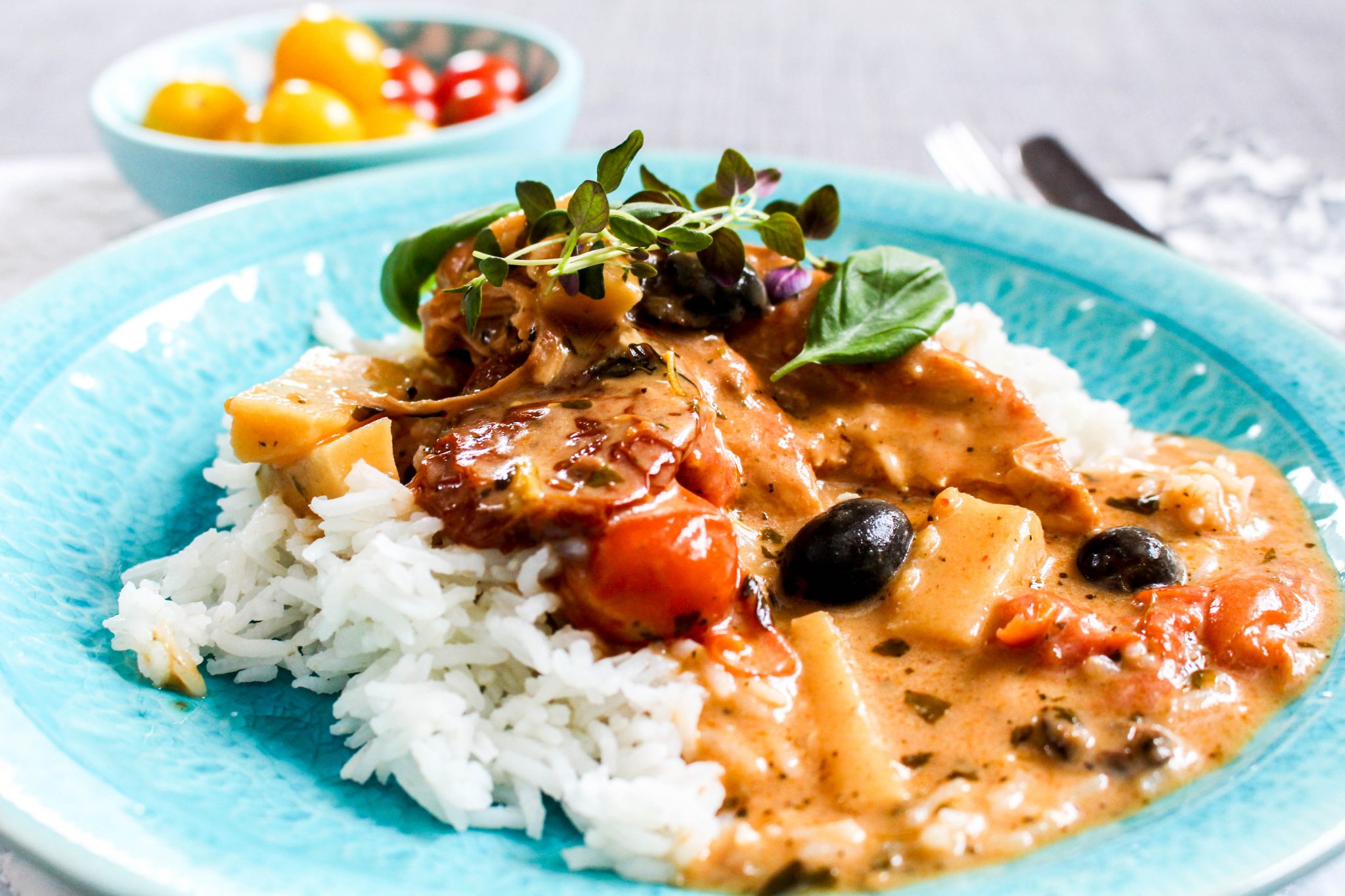 Himmelskt krämig kycklinggryta med soltorkade tomater och parmesan