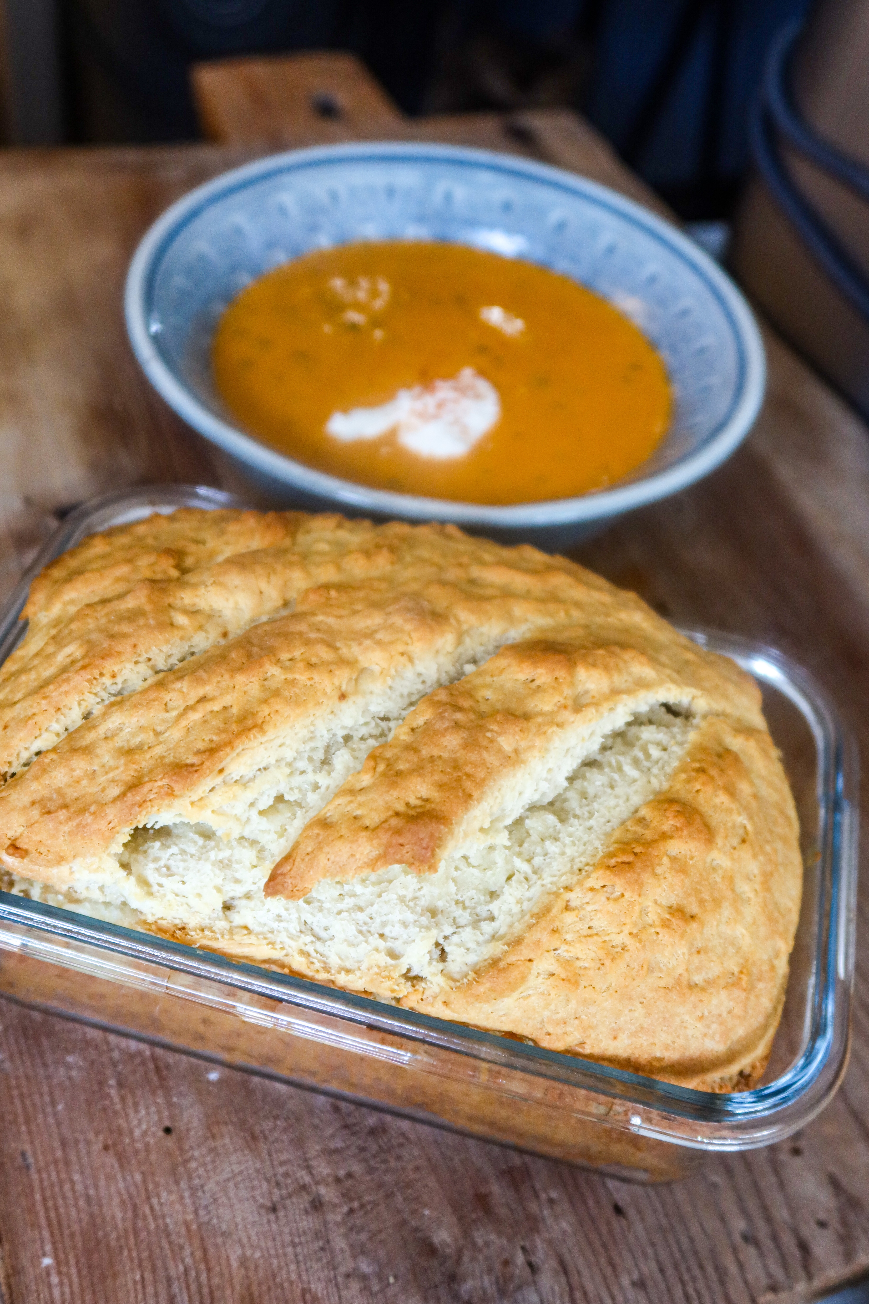 Grädda i ca 50 min. Låt det gärna stå och svalna lite i formen innan du skär upp det och serverar det till soppan. Så gott med smör och ost till just den här soppan.