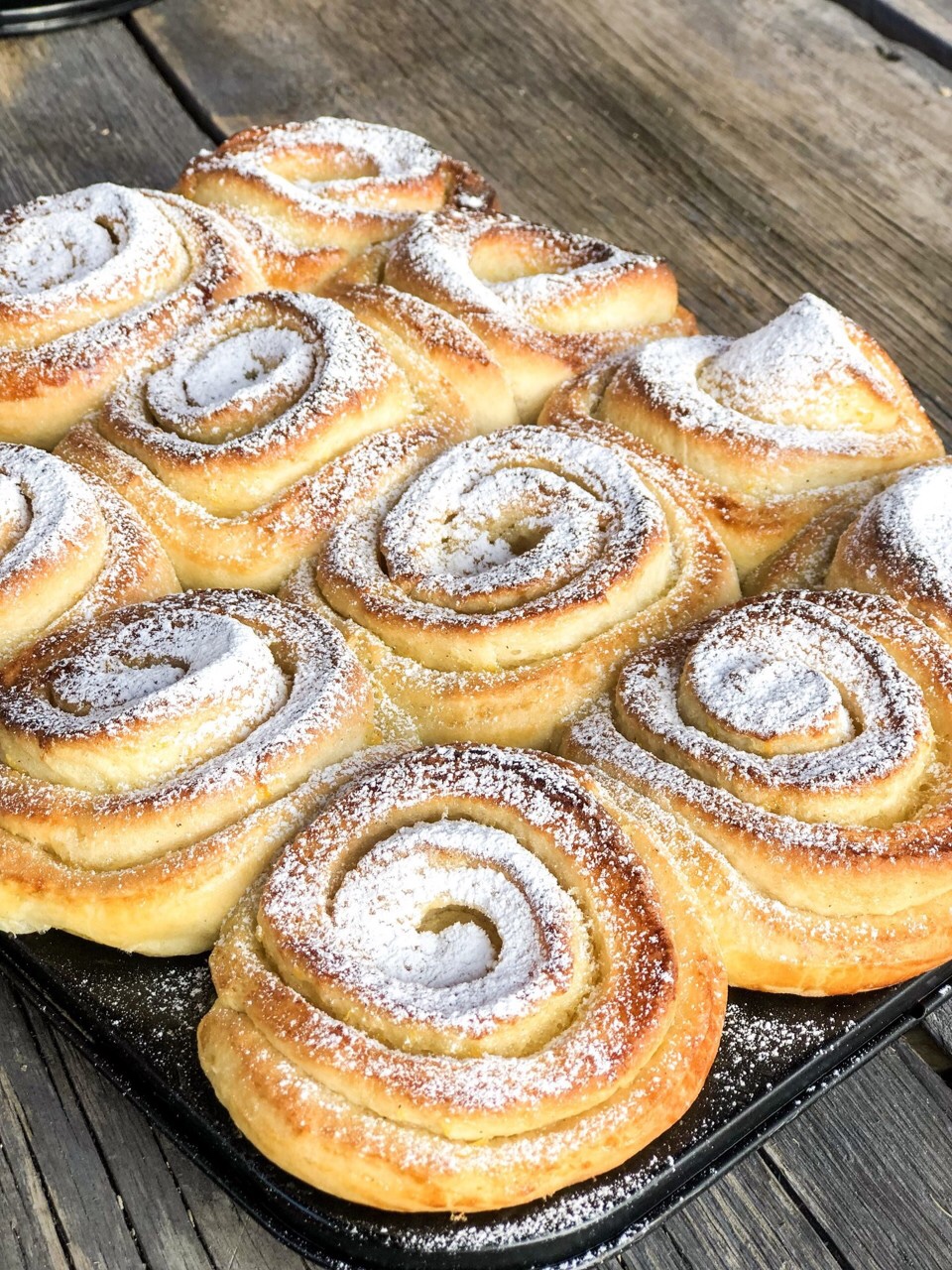 Pudra med florsocker så får du det där lilla extra, vackert och gott med ett litet florsocker täcke på dessa bullar. Dessa går utmärkt att frysa också.