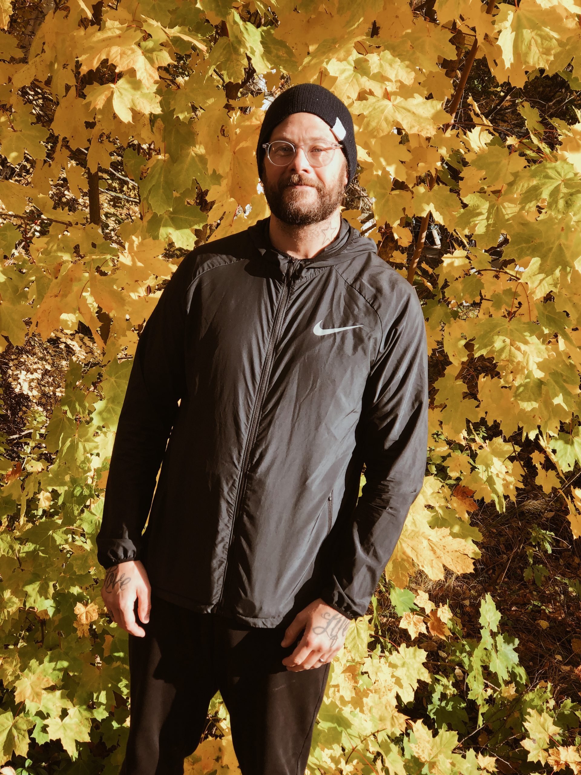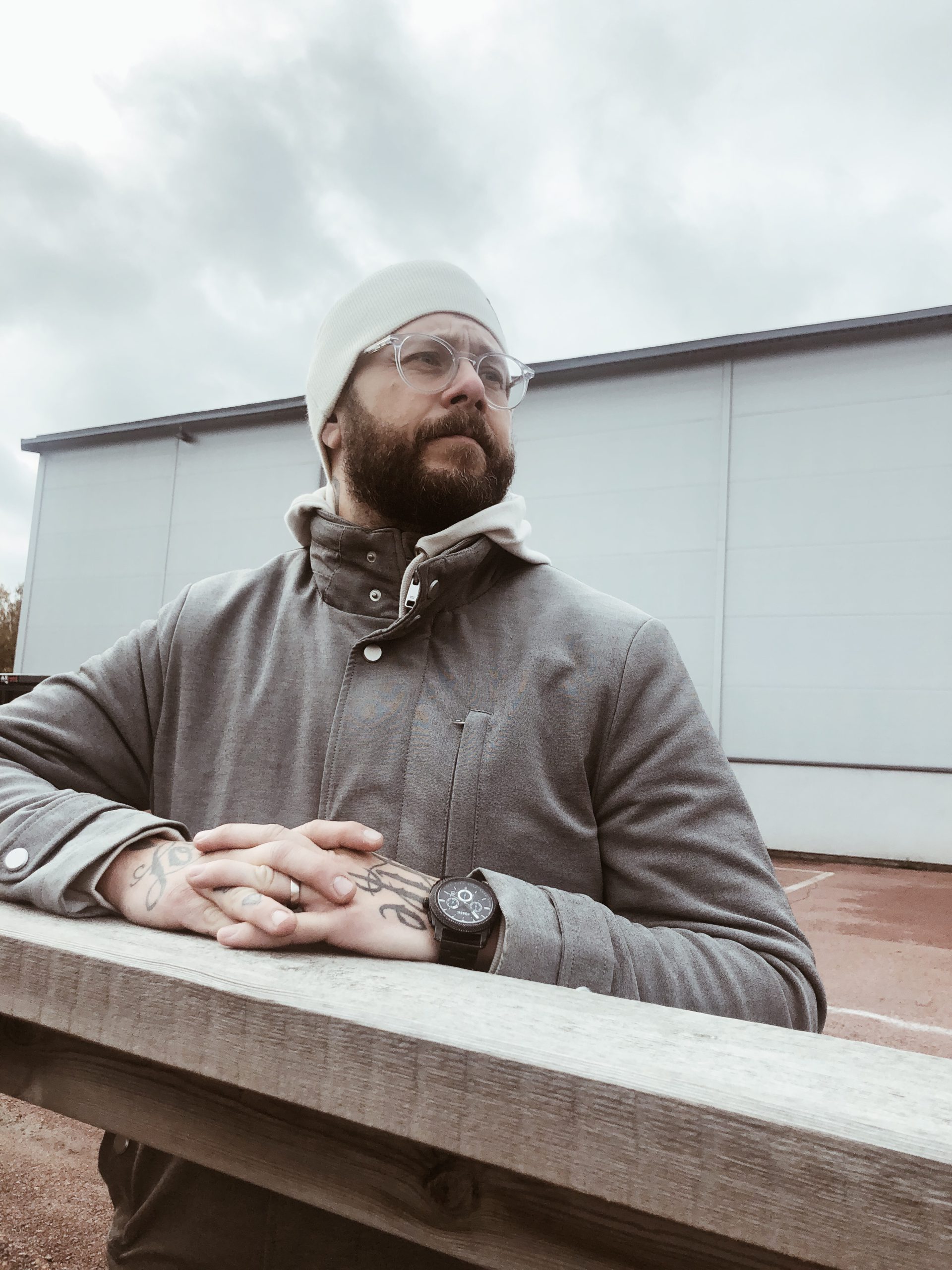 Tony är ingen fryslort, så han kan alltid stå såhär härligt avslappnat när han är ute. Jag står med axlarna uppe vid öronen liksom.