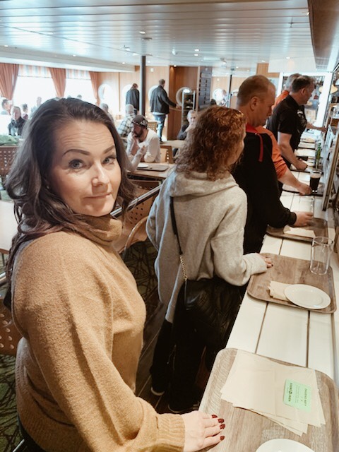 Vi hann med att äta och kika lite på Tax-free. Båtresan tar 2 timmar så man hinner inte så mycket. Köpte en ny Rituals duschmousse och så hittade jag örhängen från Snö. Fyllde på bubbelstället hemma också. Jag som knappt dricker nu, dock så är vi bjudna på kalas nästa helg. Maskerad – så gissa om jag är taggad? Lär få ta det lugnt, annars lär man somna innan kl 20. Haha…