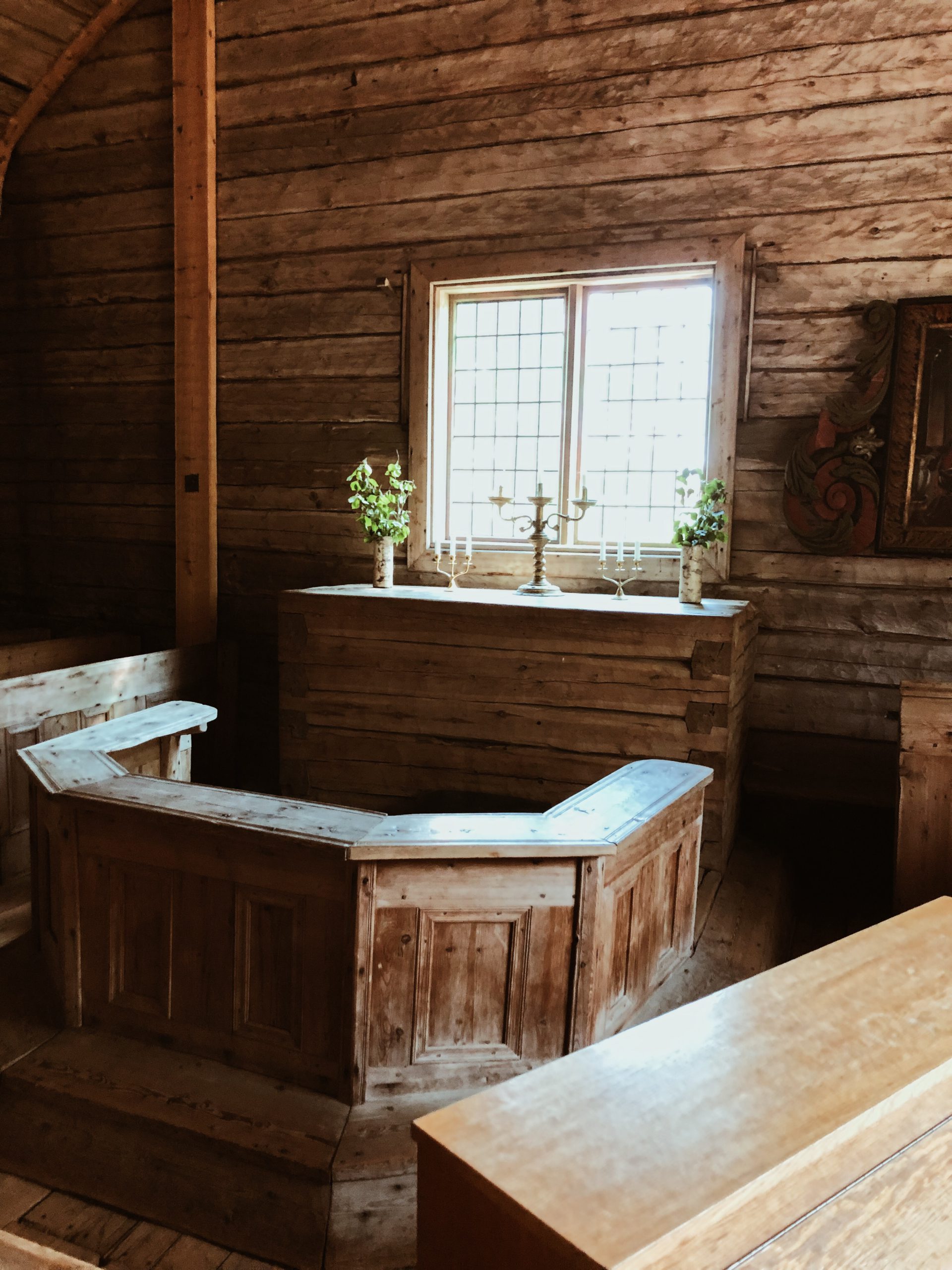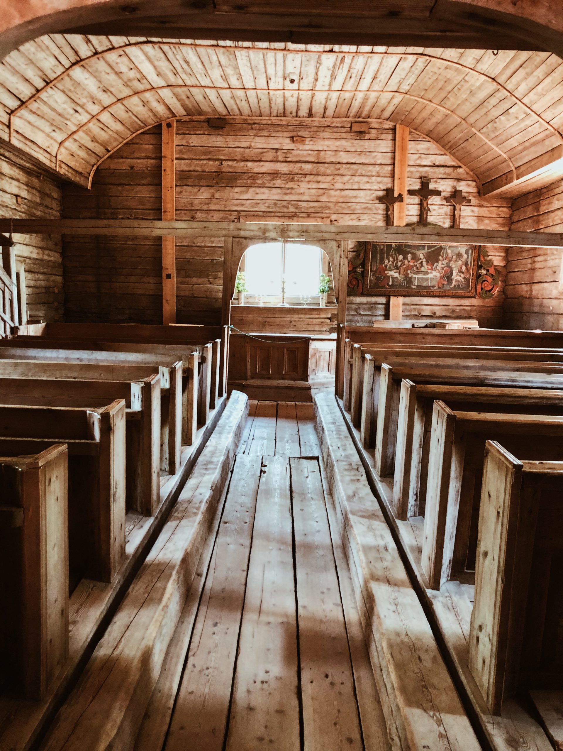 Vi besökte också ”gamla” kyrkan. Världskänd är den med sina 330 år på nacken. Det ligger också mumier begravda under träplankorna i kyrkan. Så vacker är den och doftar tungt av tjära.