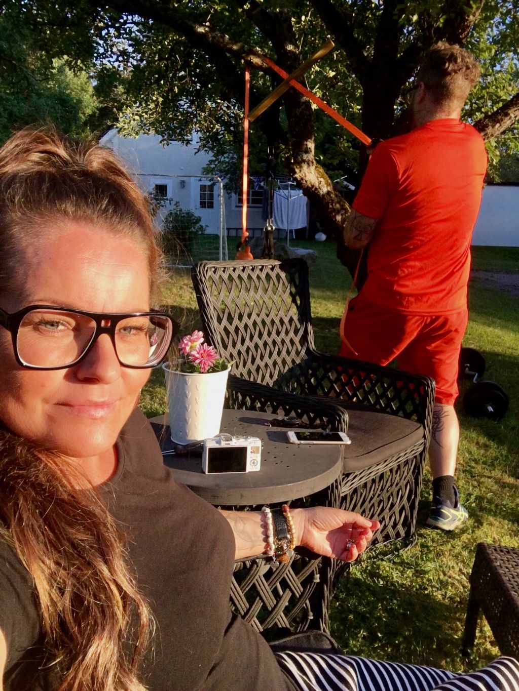 Tony byggde någon form av hemmagym igår som han stod och drog vid medan jag njöt av solen. Blev alldeles slut….