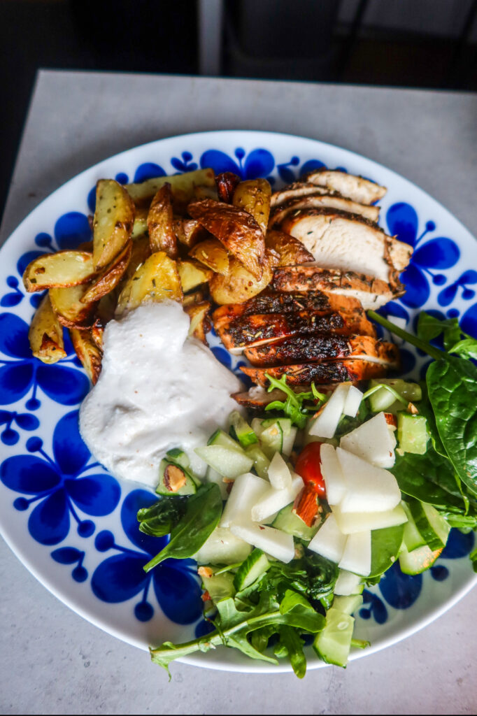Ps: Gör du denna rätt i ugnen så kör kycklingen på 225 grader i ca 20-25 minuter. Likaså potatisen.
