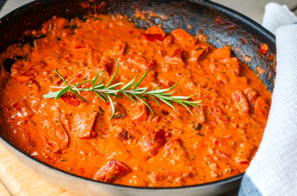 En god favorit här hemma är kycklingkorvstroganoff. Många kanske glömmer bort att korv ju finns som kycklingkorv, och att den smakar väldigt mycket som vanlig korv. I vår familj äter vi nästan bara kycklingkorv, igår köpte jag kycklingchorizo och kycklinggrillkorv. Detta blev en snabb lördagslunch för ett tag sen, och jisses så gott det blev med kycklingstroganoff. Som sagt, detta har blivit en familjefavorit. Du kan ju byta ut korven i denna kycklingstroganoff till vanlig eller varför inte vego korv. Det gör du som du vill.