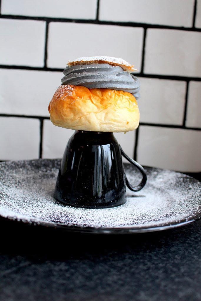Lakrits och hallonsemla, eller med smak av hallon & lakritsskalle kanske man skulle säga. Den här semlan har väckt både arga miner men också glada pigga miner för dem som inte gillar vanliga semlor. Hur bra att det finns något för alla smaker tänker jag. Man måste inte älska lakrits och hallonsemla, man kan hålla sig till sina klassiska semla hur mycket man vill. Men det måste få finnas plats för fantasi och smakvariation på något så heligt (för vissa) som en klassisk semla. Skulle jag vara en semla skulle jag känna mig hedrad med tanke på alla hybrider som finns i världen nuförtiden. Det är ju semmeltider nu så det bara dånar om det, även om själva fettisdagen är om några veckor. Jag har ju låtit kreativiteten flöda och sedan har jag också letat massor med semmelinspiration på nätet. Denna semla gjorde jag då jag tyckte att det såg så otroligt gott och häftigt ut med svart grädde. Jag själv kunde inte äta den (tål inte hallon) men kan säga att Tony tyckte det var supergott när han åt av denna lakrits och hallonsemla.