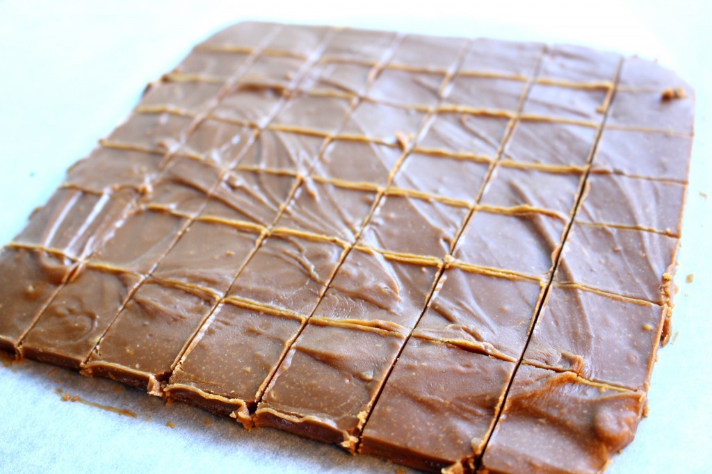 3. Ställ i kylen och låt svalna. Skär i fyrkantiga bitar och förvara i en burk i kylen.