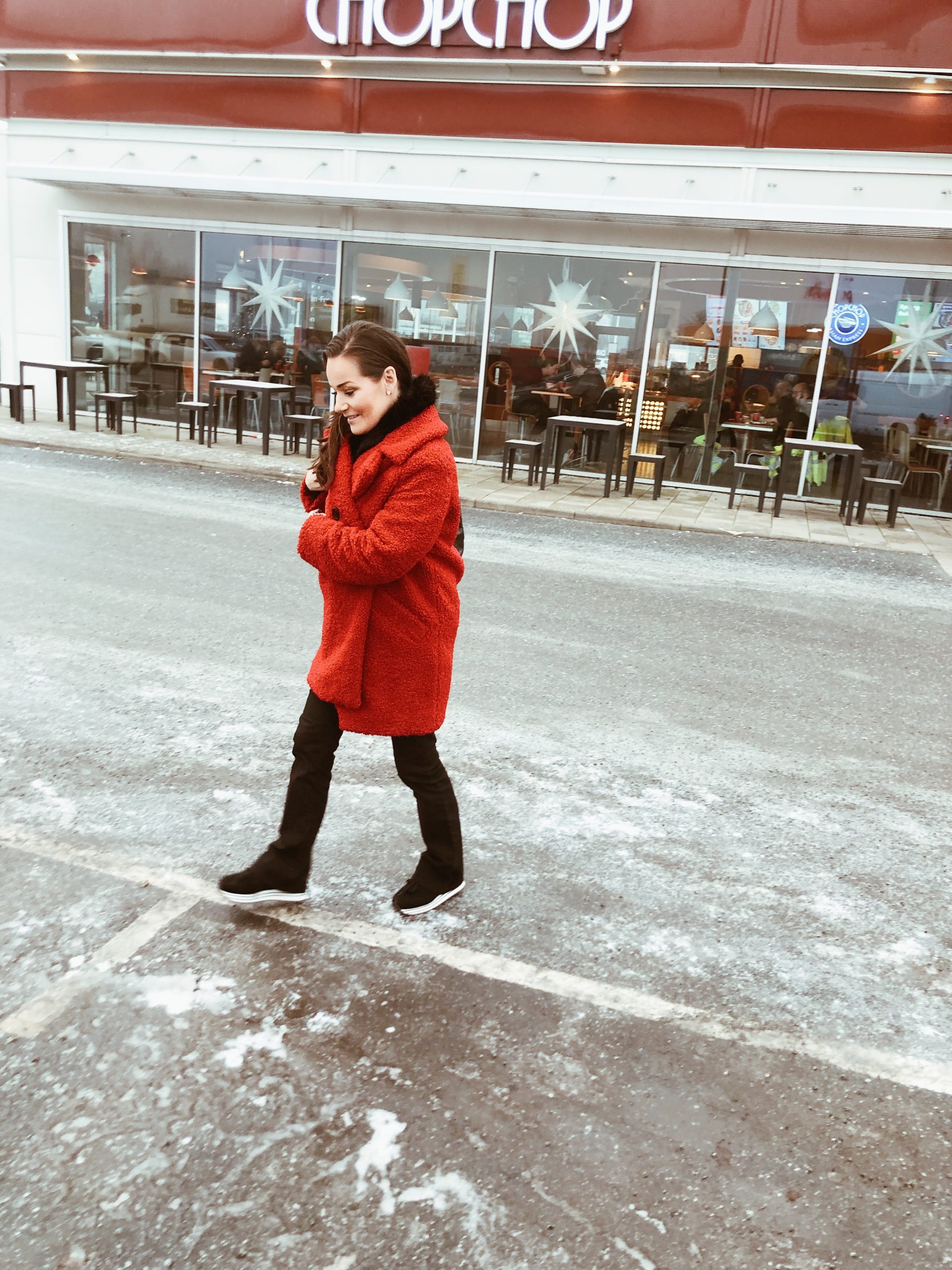 Lunchen idag fick bli på Chop chop. Halkade runt som en Bambi på hal is. Snacka om halt det varit idag. Tänker på gamla tanter och farbröder som ger sig ut. Hoppas de blivit försedda med broddar. Jag har ett par som jag brukar ha när jag går ut på promenader på vintern, skulle tagit dom.