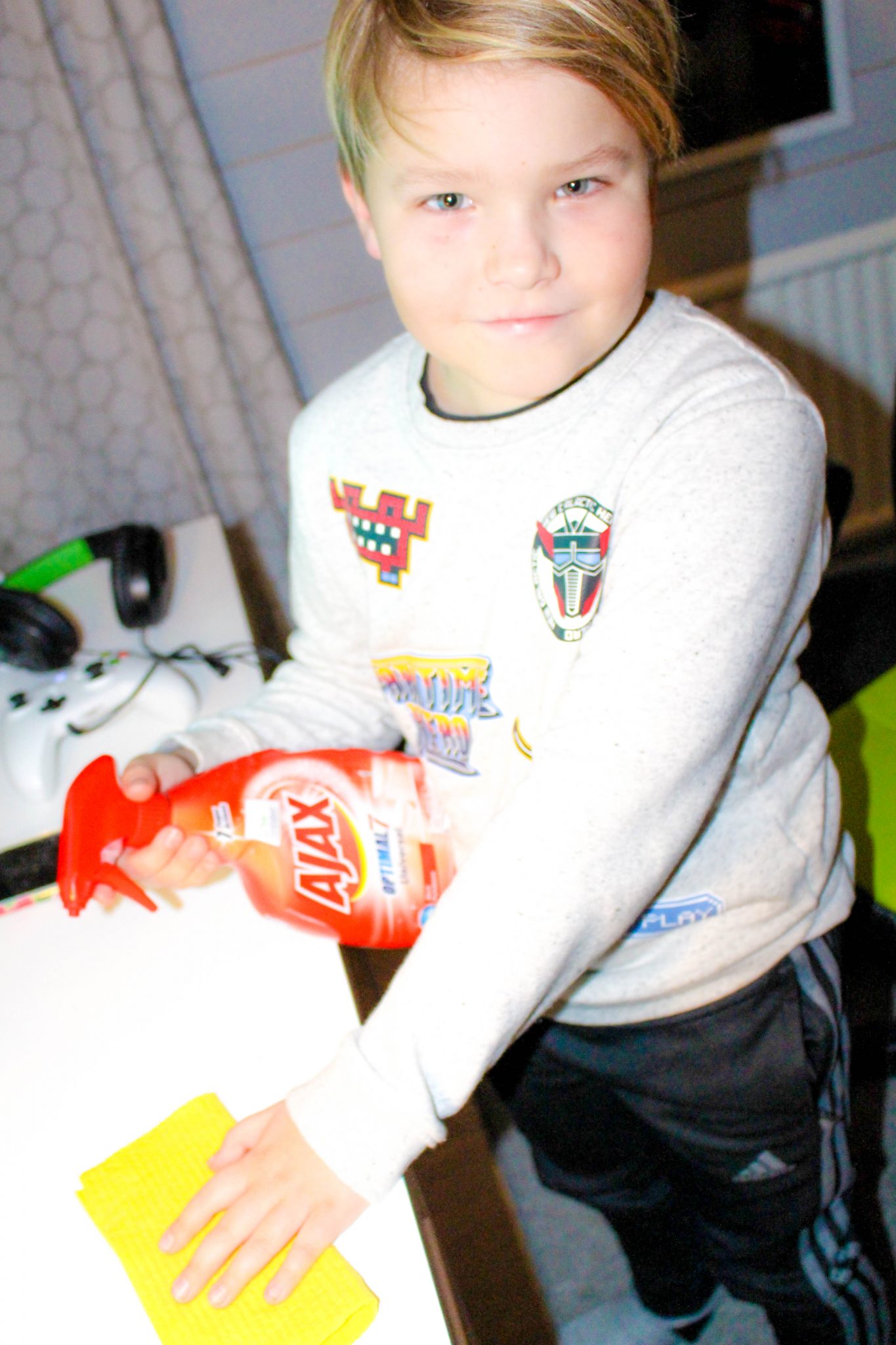 Japp, såhär har det sett ut. Ajaxsprayen och trasan i högsta hugg för här ska städas och plockas undan så man får lite extraslantar. 🙂 Ni kan själva bestämma vad uppgifterna ska vara och precisera dem. Det där bestämmer ni.