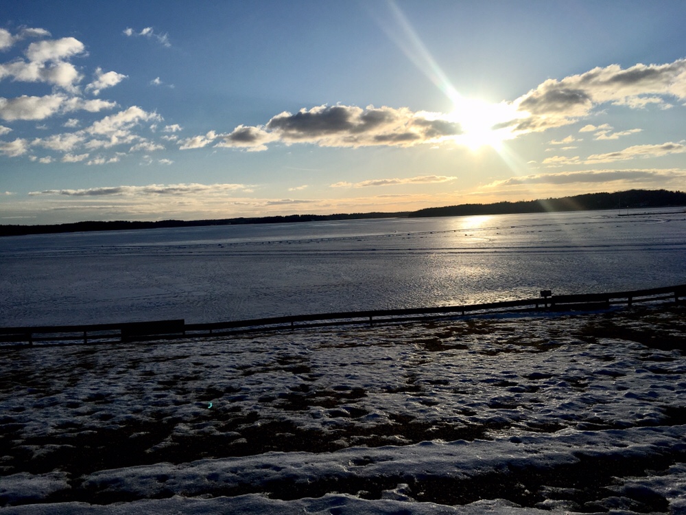 När vi kom hem från våra jobb idag så bytte jag om och gav mig ut på promenad. Kallt men soligt och vackert. Jag klär mig alltid så jag fryser lite i början, då brukar det bli lagom när man får igång flåset. Lyssnade på Skäringer och Mannheimers podd under tiden. Älskar när Mia Skäringer kör Tabita rösten. Blir alltid så full i garv då. Där går jag och skrattar för mig själv, måste ju se lite roligt ut om man ser mig.