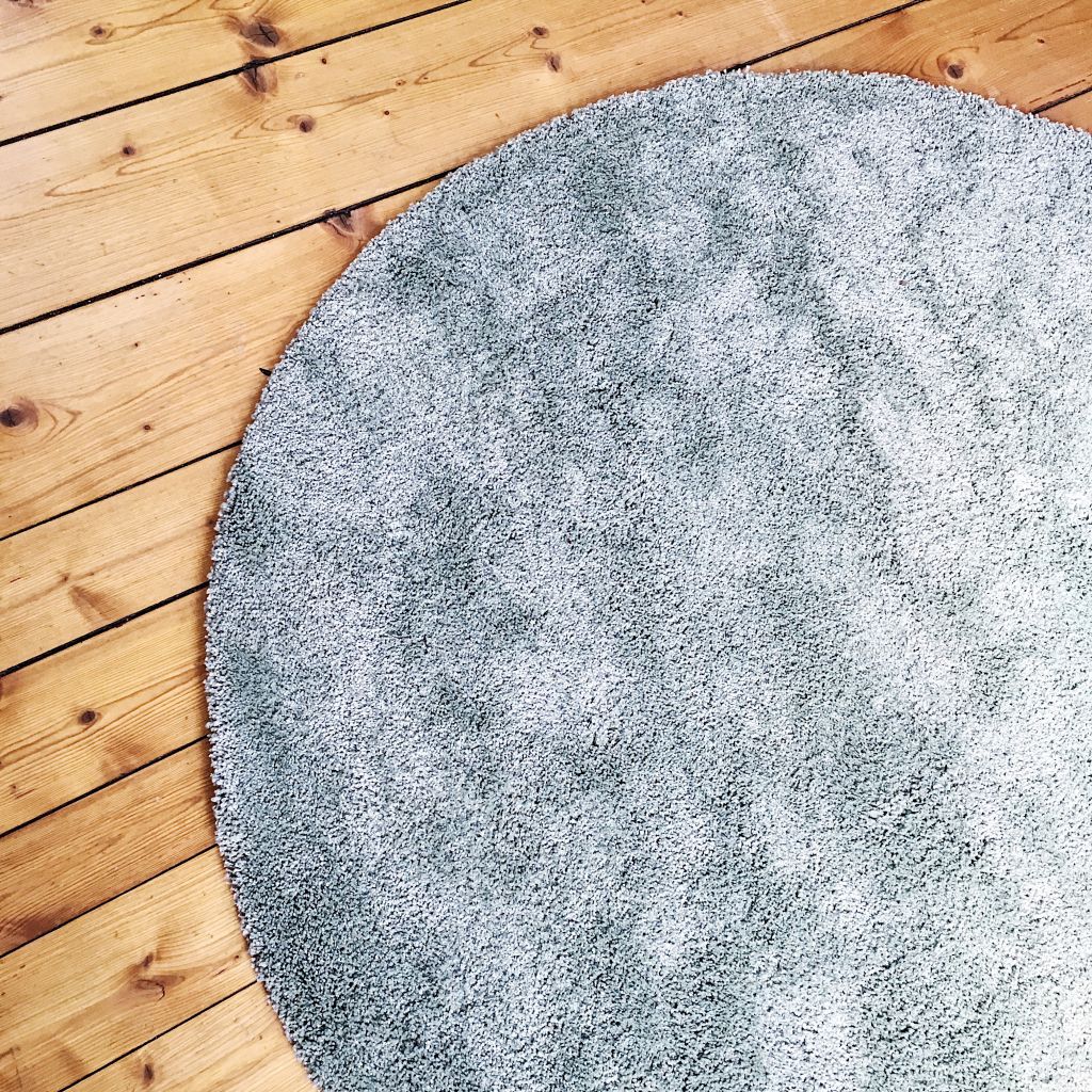 Svårt att få fram färger riktigt på mattan men den är skönt grön typ. Den är mer samma färg som skålen än man tror, på bilden är den mer grå. Köpte den på IKEA, den skrek att den ville till vårt vardagsrum. Haha…