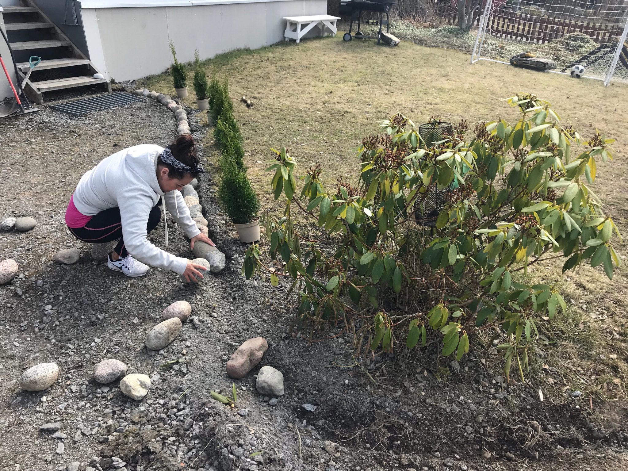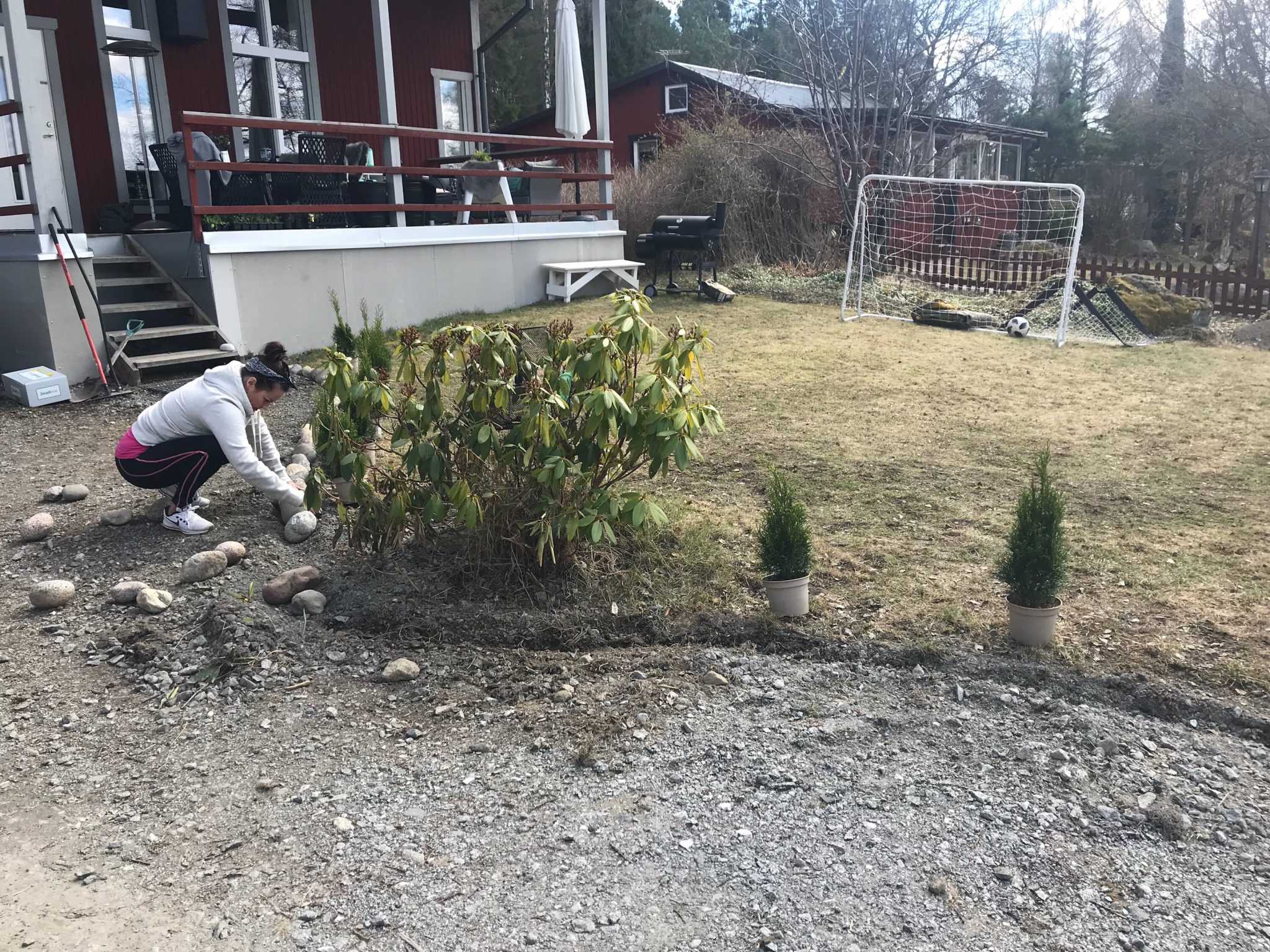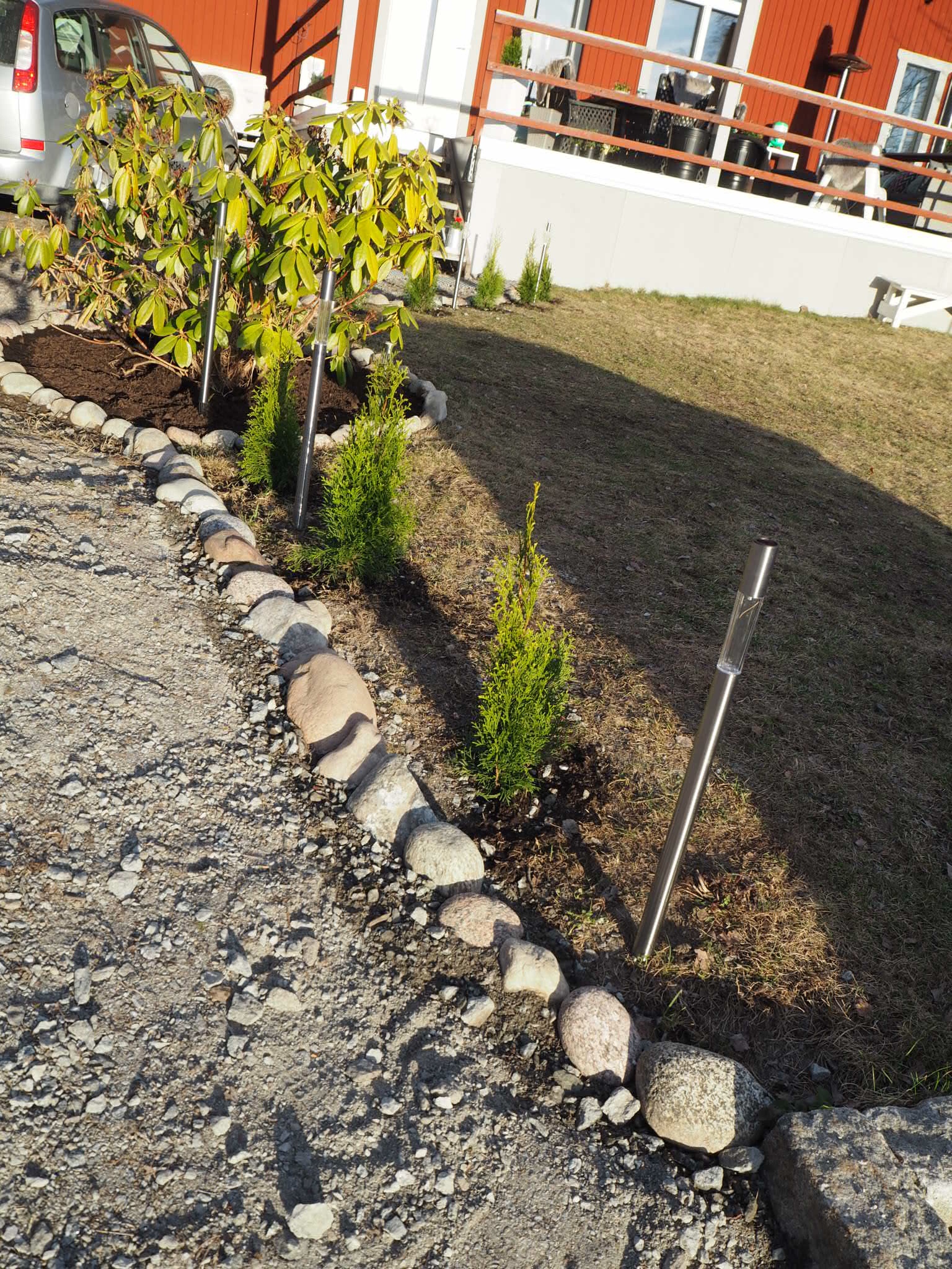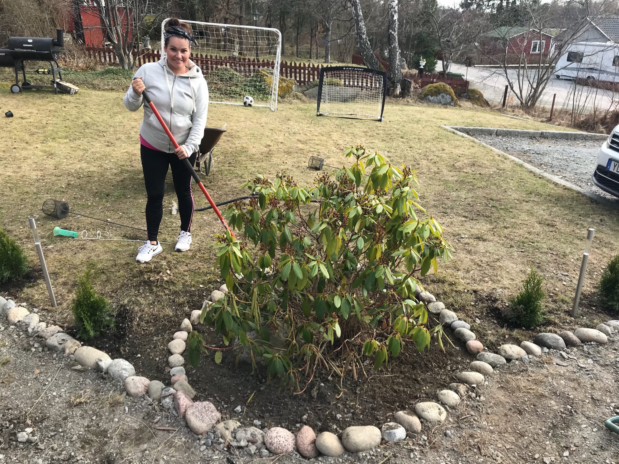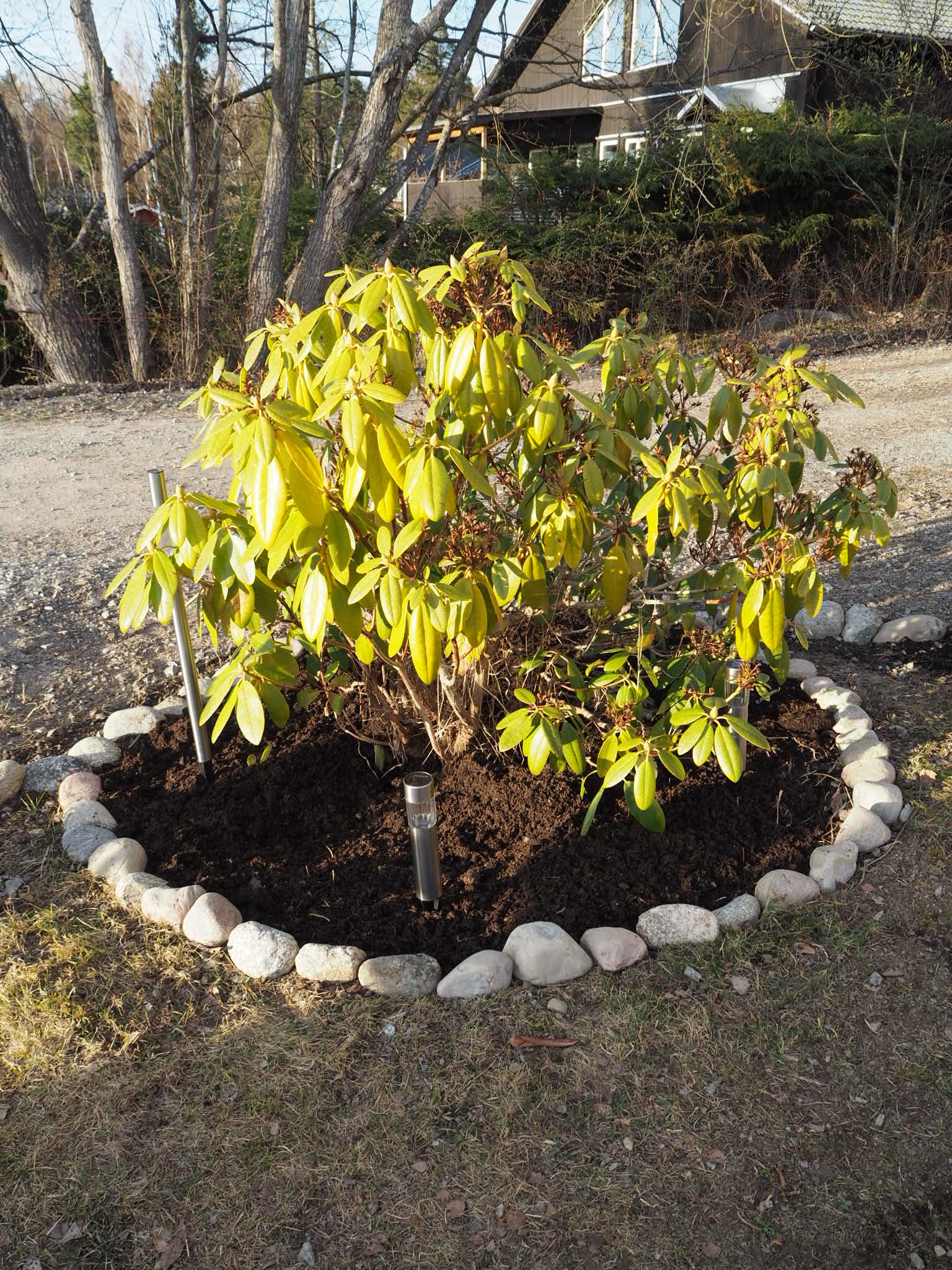Ramade även in rhododendrobusken som var det som fanns i trädgården. Fyllde på jord och rensade ut den ordentligt.