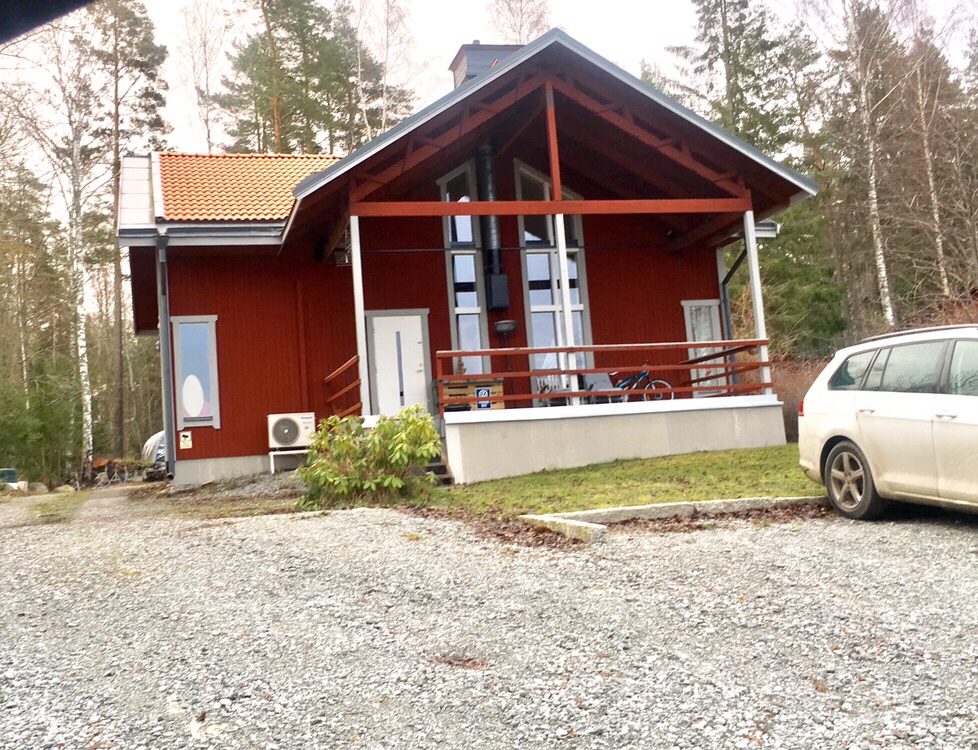 Jag sitter och jobbar inne hos Vagnhild. Har målat lite av taket nu och ska strax fortsätta. Tänkte kika in till dig en stund först bara.