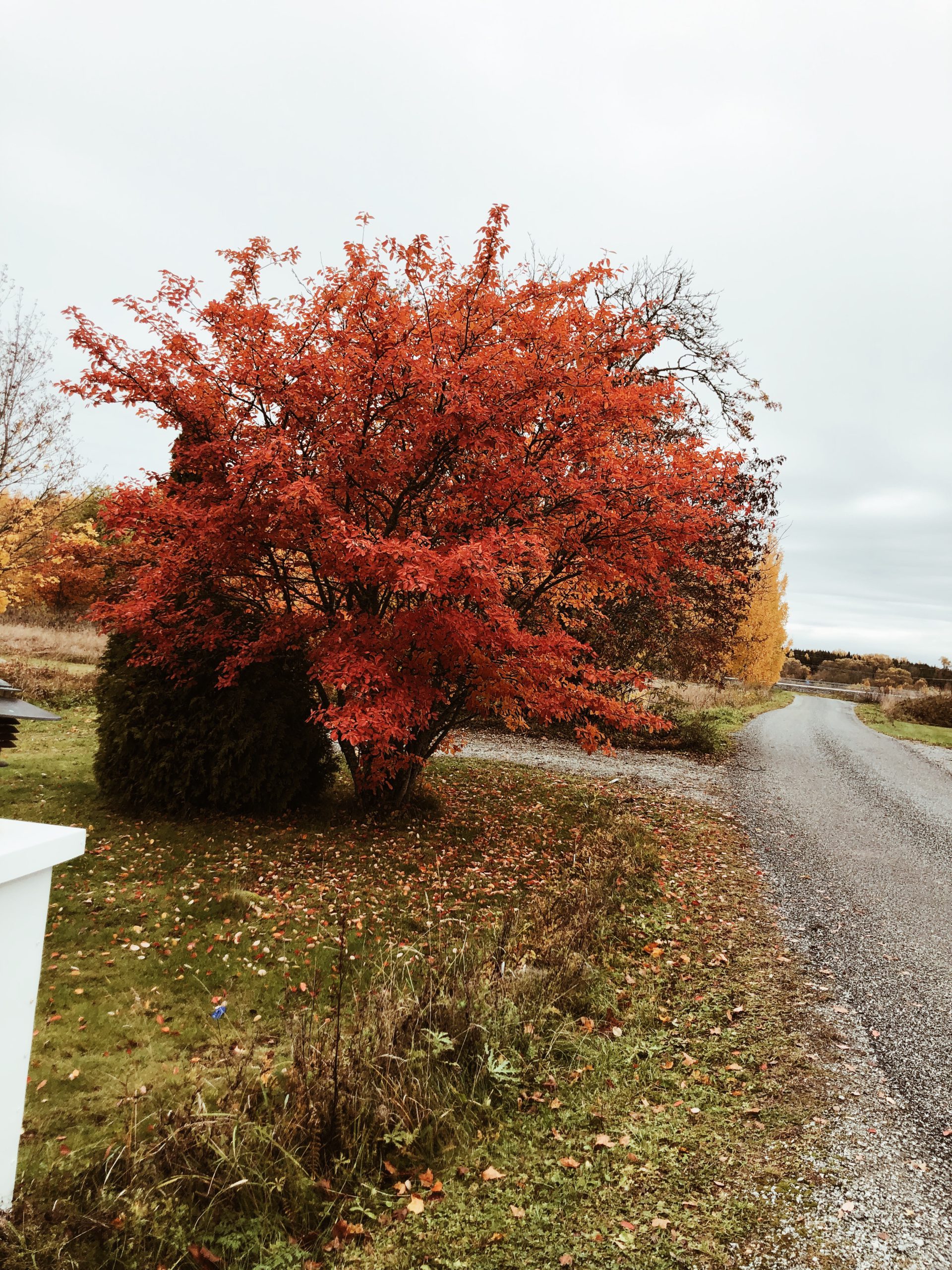 I eftermiddags for jag ut till mamma och pappa. Möttes av detta knallröda träd. Så otroligt vackert!