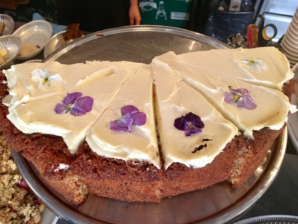 Efter Mall rattade vi bilen mot Loppikontoret. Jag och bästa Charlotta (ägare av Loppi) skulle ha möte. Ett bra möte på Saturnus, ett fika/matställe som ligger bredvid deras kontor. Kolla in storleken på bakverken?! Morotskakan ser ni storleken på när man jämför med Milos huvud och MER-flaskan. Galet! Han orkade inte ens hälften!