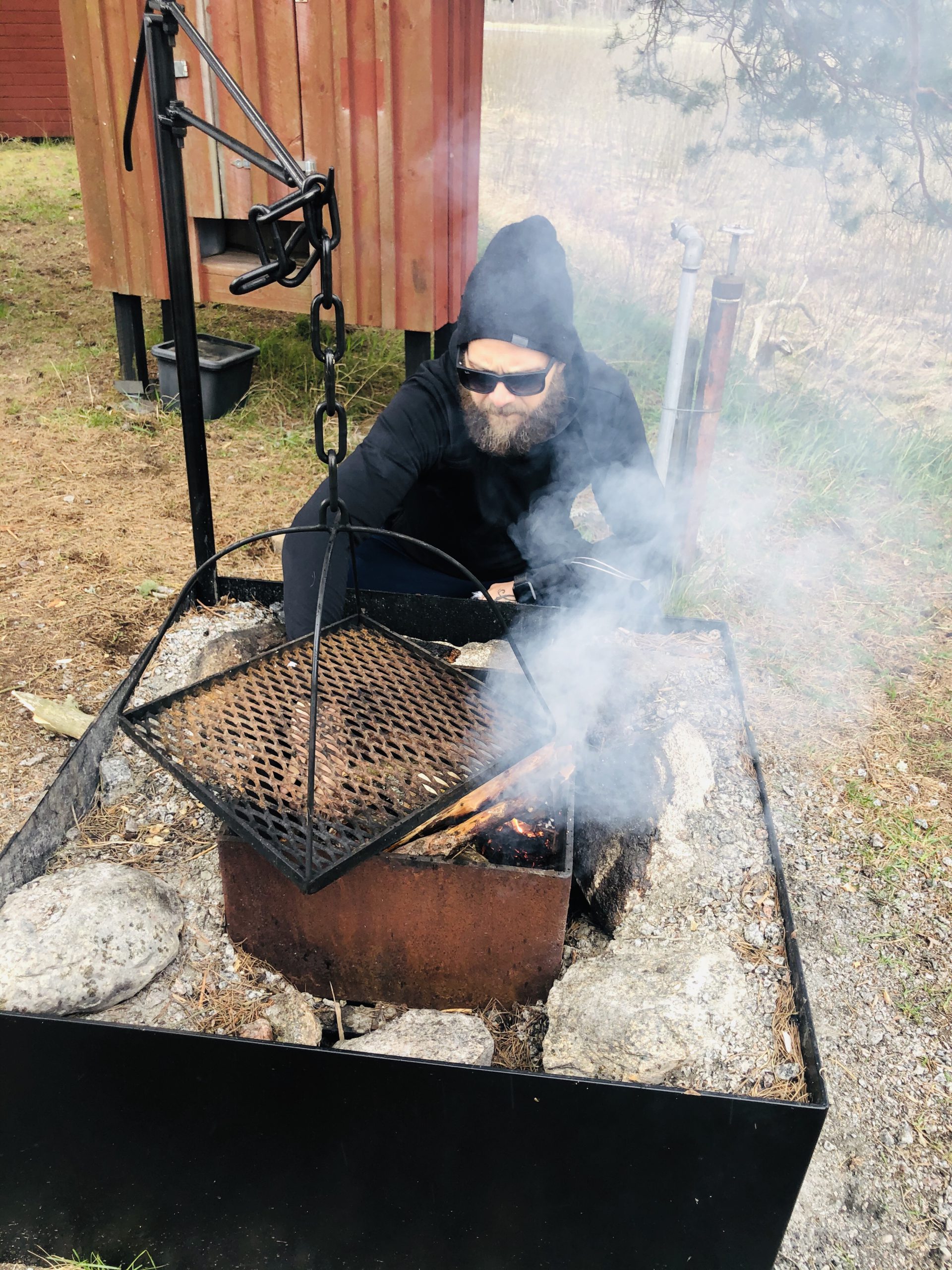 Vi tände elden ”the hardcore style”. Utan ved med bara tändstickor. Men vi lyckades och det är ju liksom ännu mysigare på något vis då. Vi grillade så gott och satt länge och bara njöt.