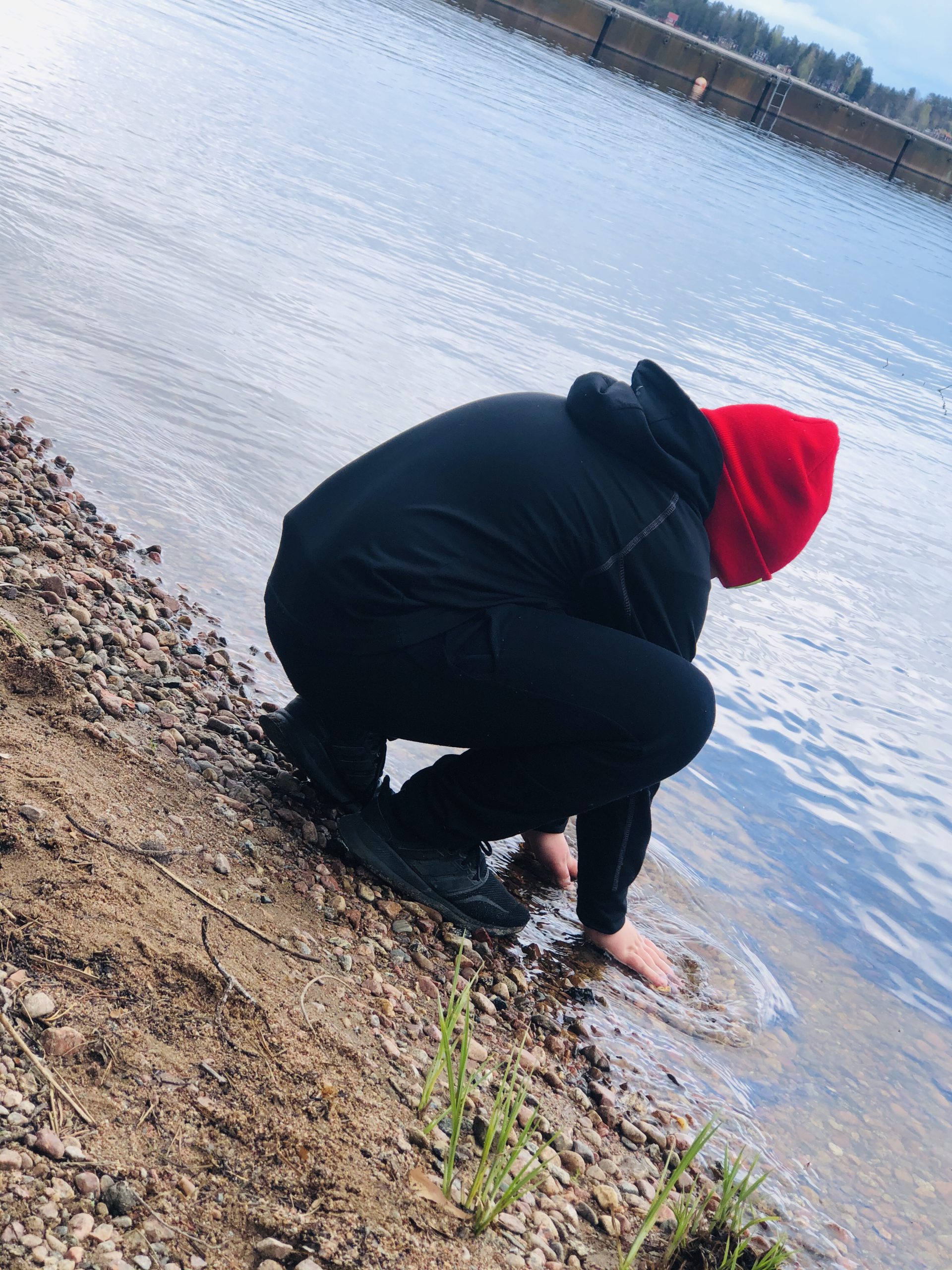 Det blev mackkastning då hela stranden var full av platta stenar, Milo vann med sina 10 mackor. Jag lyckades med 8 st.