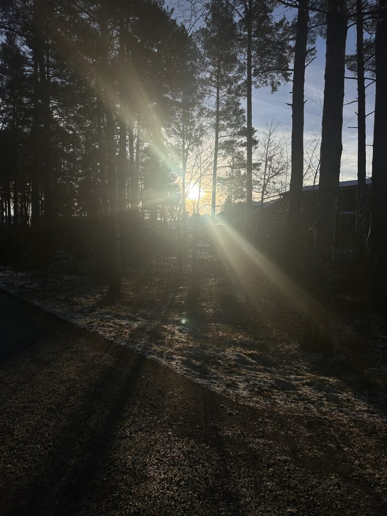 • Vistas i solljus eller dagsljus minst 30 minuter per dag. Igår stod jag som ett fån och bara tittade åt solens håll för att försöka få kroppen att förstå att det var dag. Ska också ta hjälp av min dagsljuslampa (<klicka).