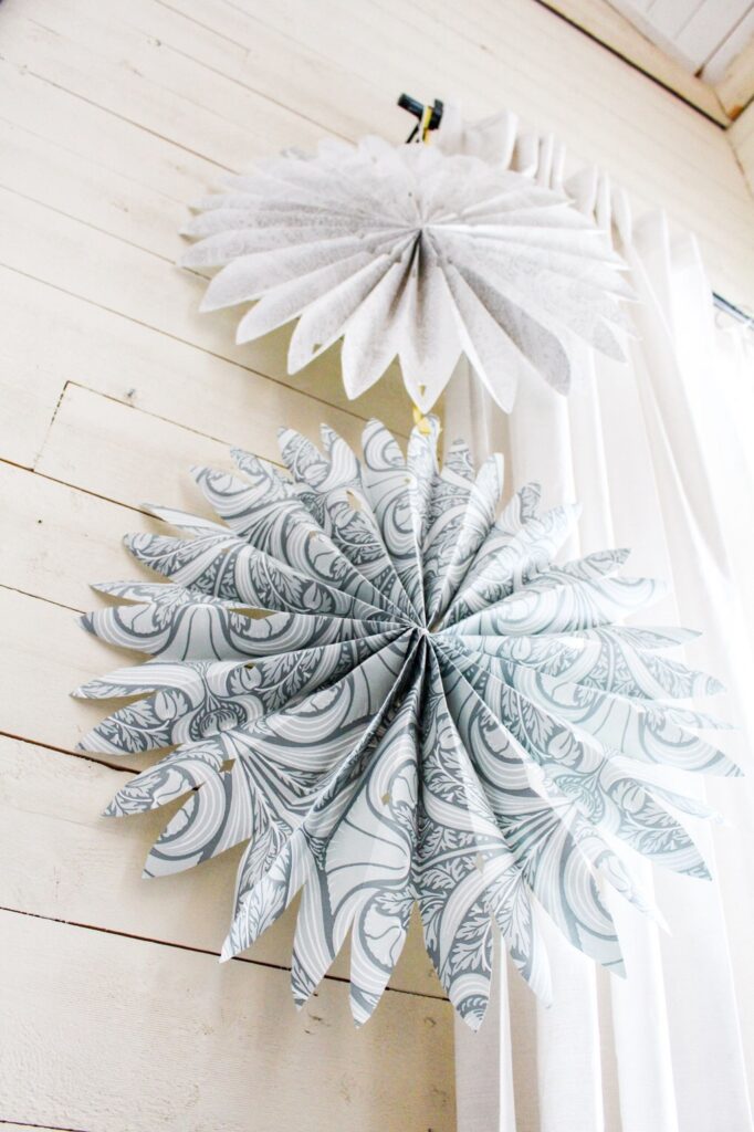 Pyssla ihop egna stjärnor av gamla tapetrester eller varför inte brunt presentpapper som jag gjort här ovan. Klicka HÄR för beskrivning.