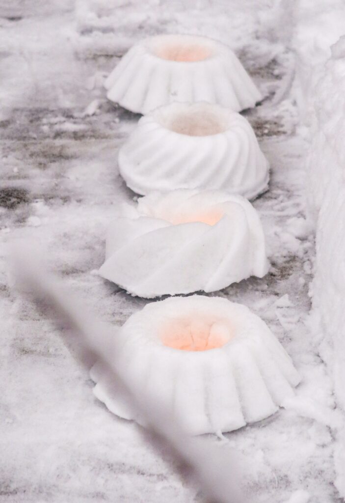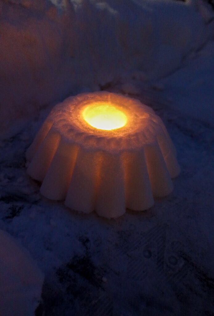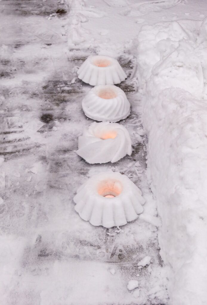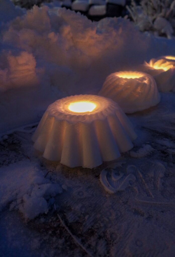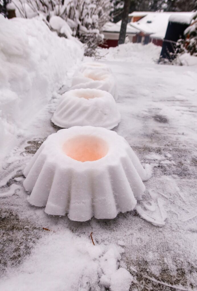 Gör snölyktor. Har du snö där du bor kanske du kan göra dessa enkla snölyktor som verkligen förhöjer myset ute i trädgården.