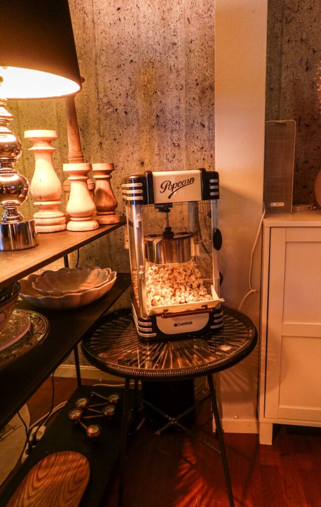 Apropå julfilm, så mysigt att samla familjen och hoppa upp i sofforna med popcorn, julmust och en riktigt bra julfilm. Kan varmt rekommendera vår popcornmaskin. Jag tänkte att detta skulle vara onödigt först, men kan säga att så mycket glädje som den här popcornmaskinen skänker varje gång vi har folk hemma så är det värt det 1000%. Nu när Milo hade kalas så samlades först och främst alla barn kring den här maskinen. De kunde ta pappmuggar och liksom gräva ur maskinen själva. Den är så enkel att använda. Man häller i nästan en msk med olja först och sen ca 1 dl popcornkärnor. Sedan sköter den resten. Hur smidigt som helst. Finns en röd variant HÄR till bra pris nu. Glädje för vuxen och barn. Nu i jul så kommer den här få stå framme också. Även om popcorn kanske inte är så juligt så är det en festlig detalj. Ska testa den juliga varianten av popcorn nästa gång, när de poppat färdigt så ska man lägga dem på en ugnsplåt och sedan koka en form av karamellkräm som man häller över dem. Sedan krydda med pepparkakskrydda. Imorgon ska jag testa det. Så spännande!